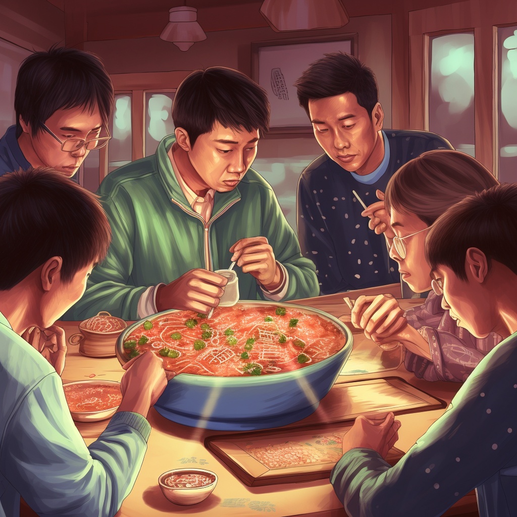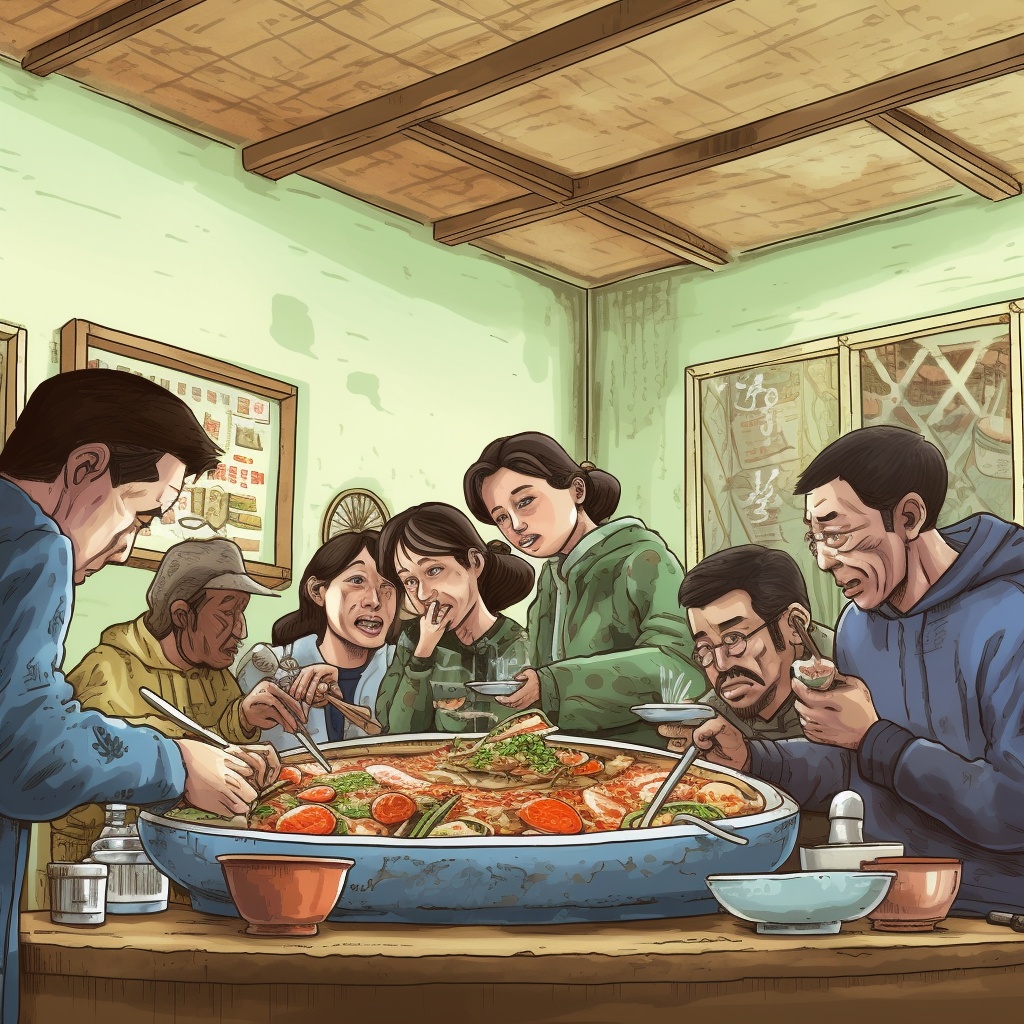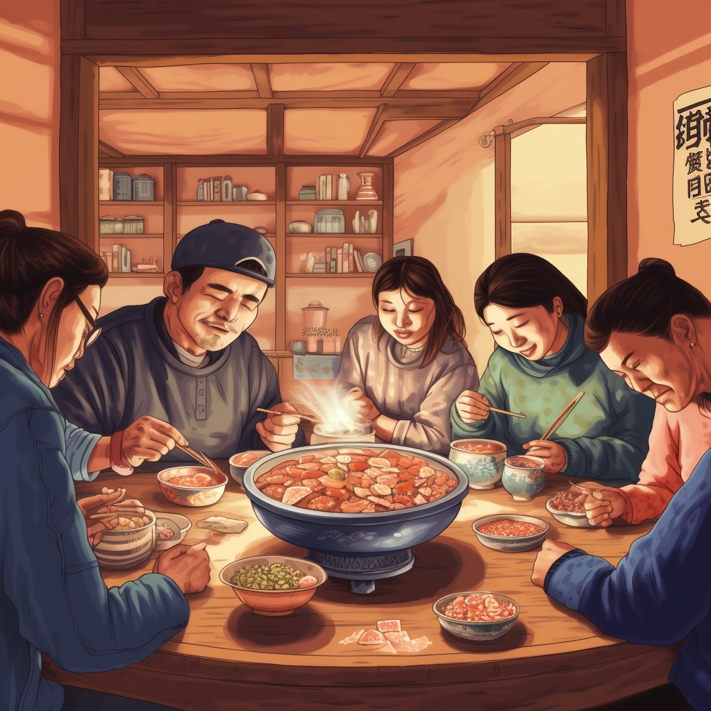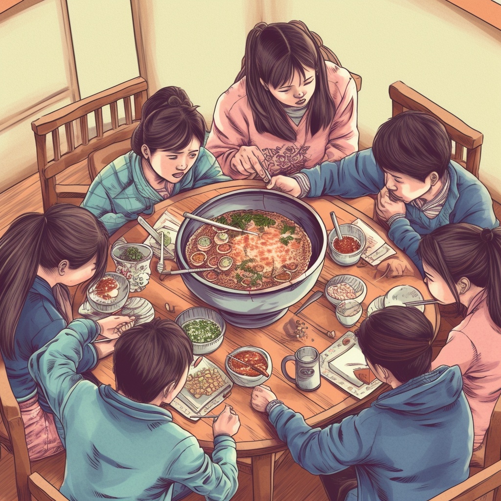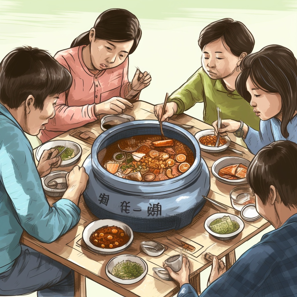 AI绘画,一家人吃火锅
