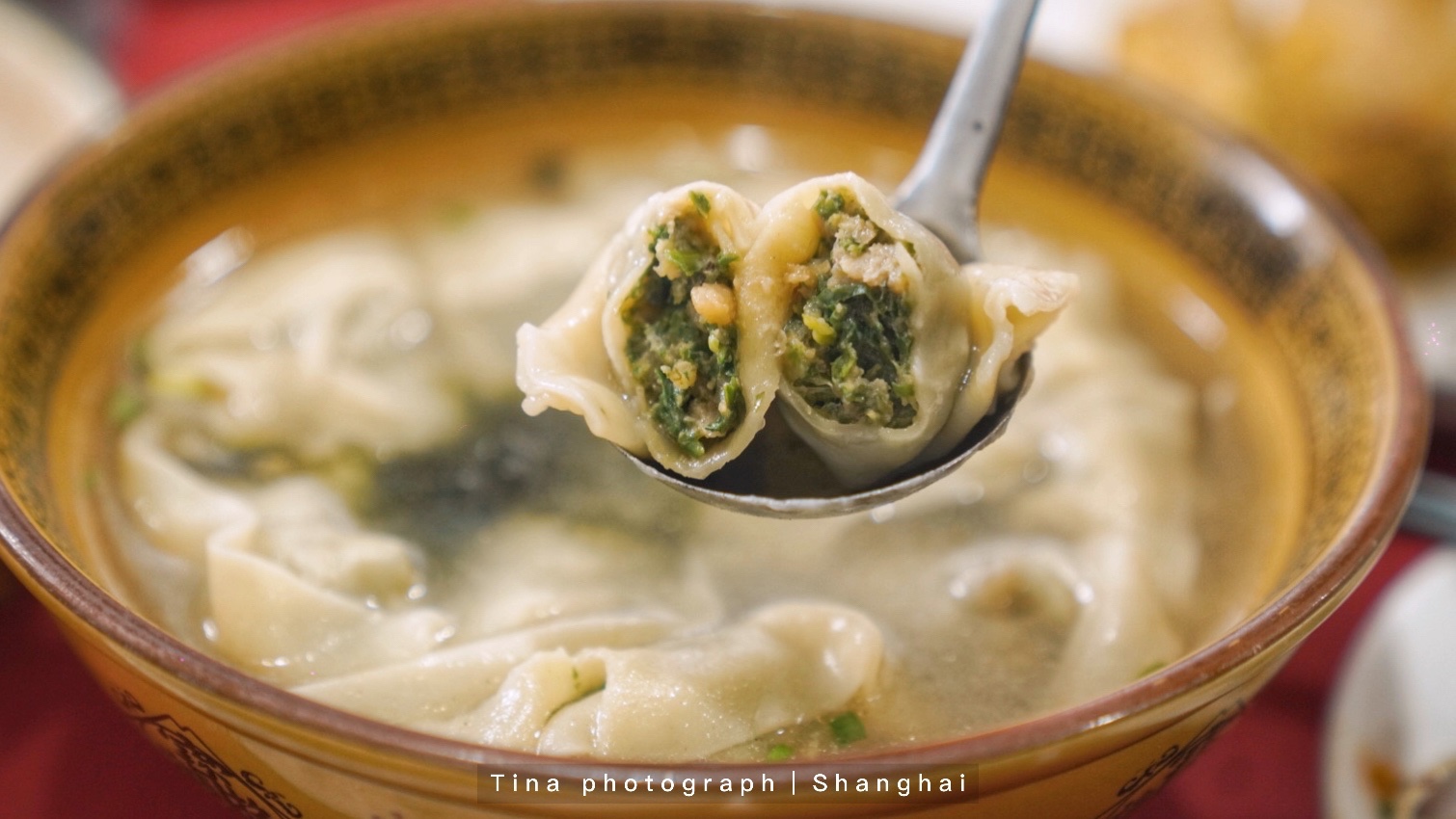 番茄牛肉滑蛋,咸蛋黄茄子,葱油鲜黄贝,椒盐猪手,荠菜馄饨,两人花费320