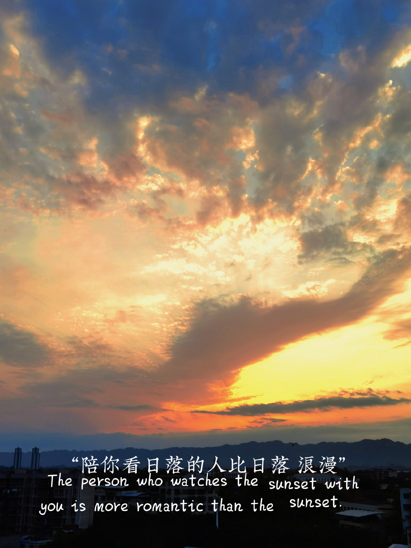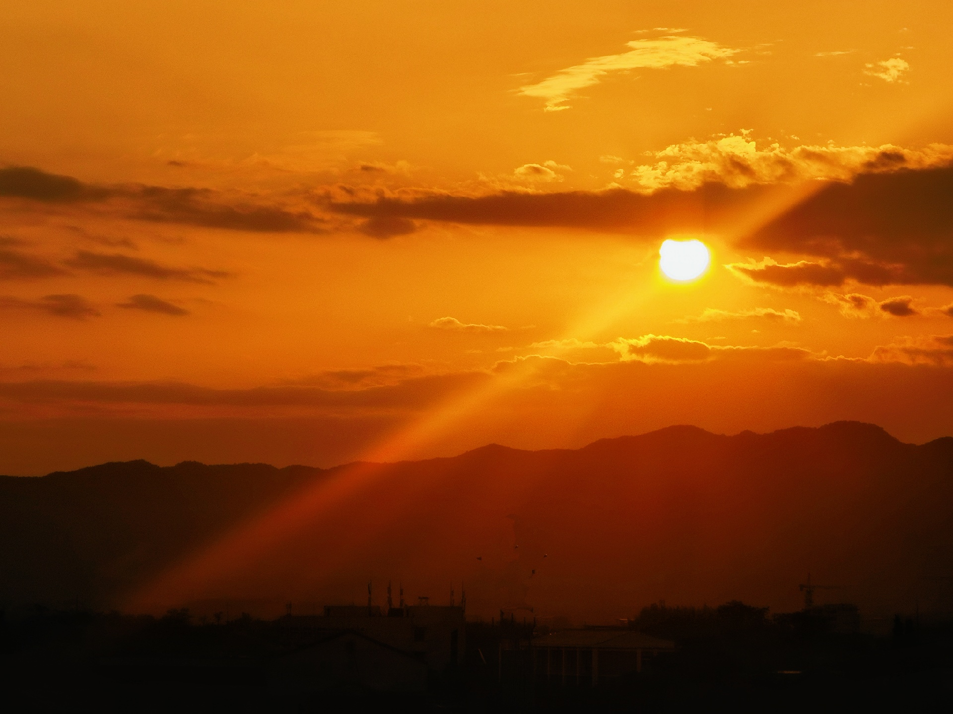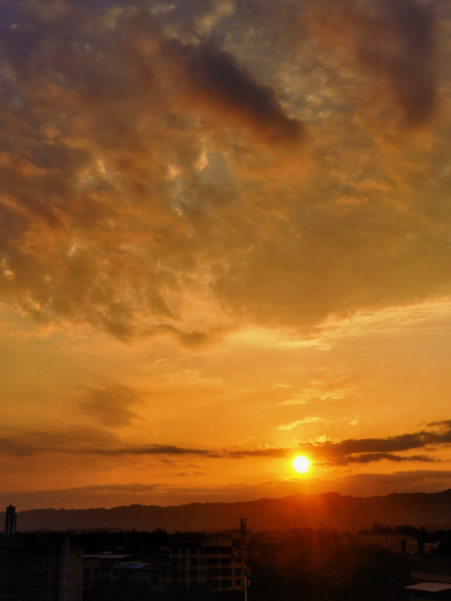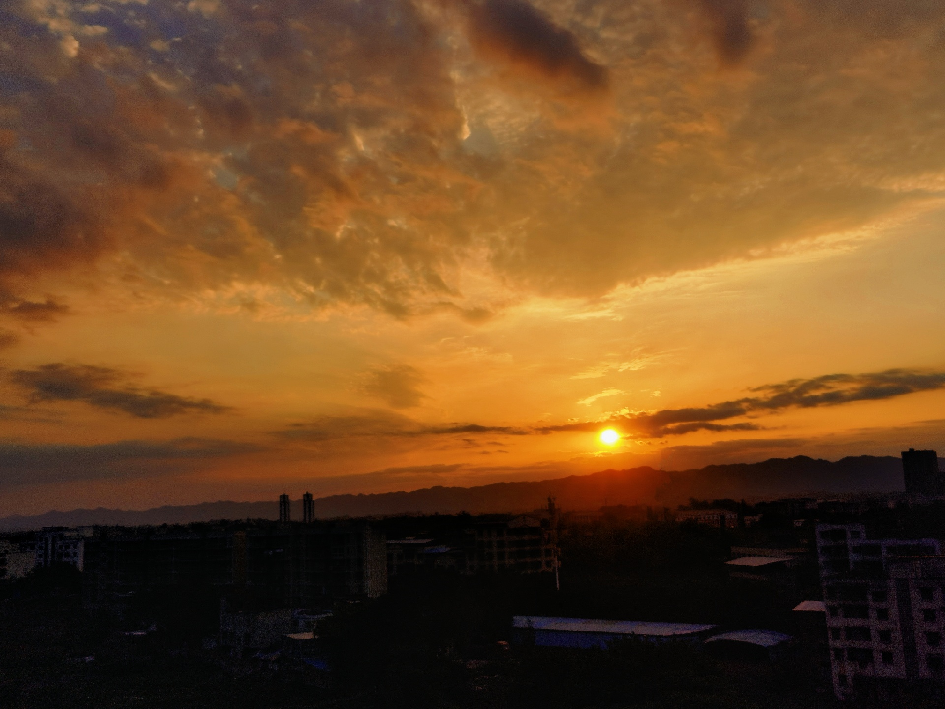 #楼顶拍夕阳,夕阳映红天。
