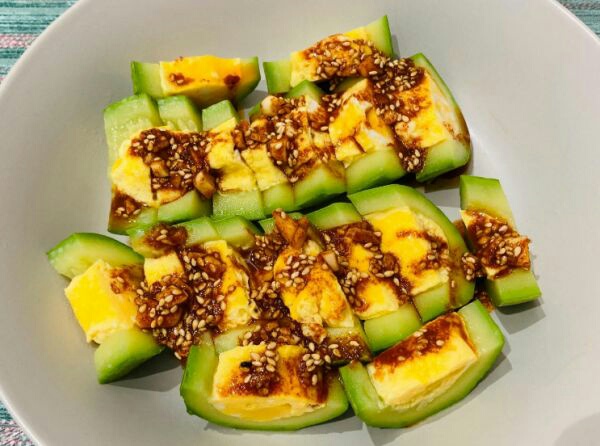 最后蘸着吃,或者直接浇在西葫芦蒸蛋上。