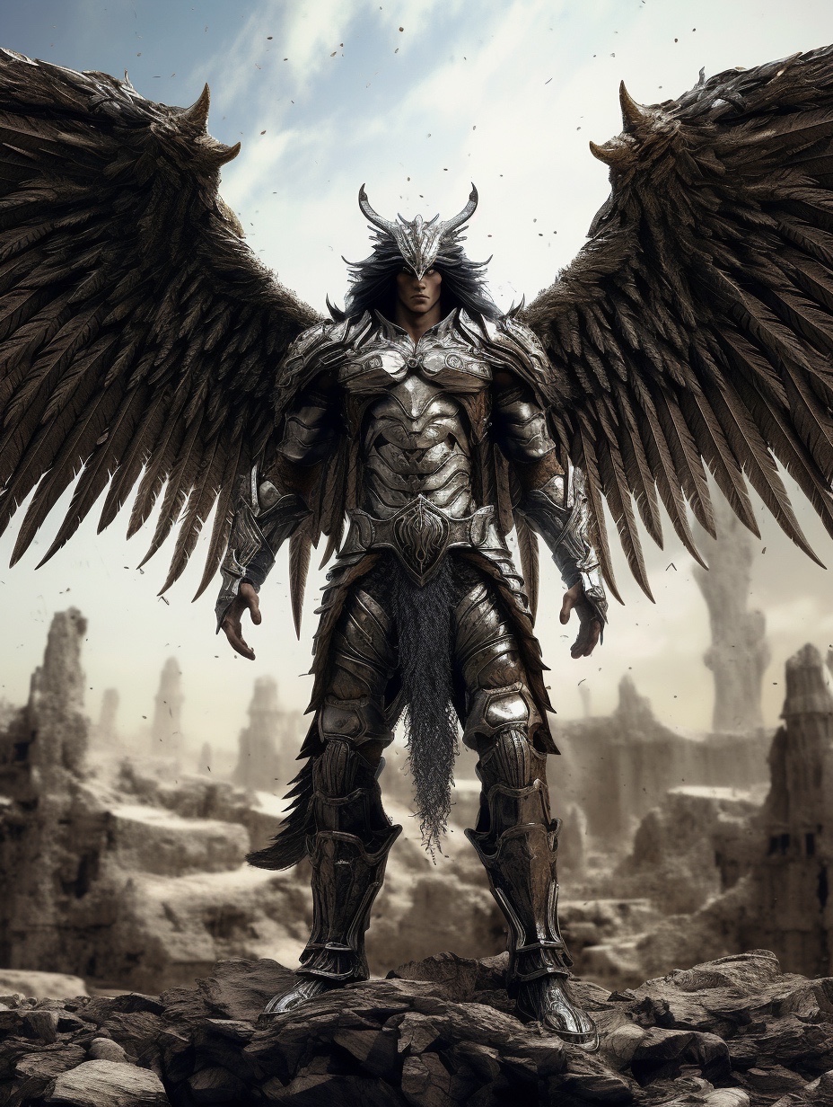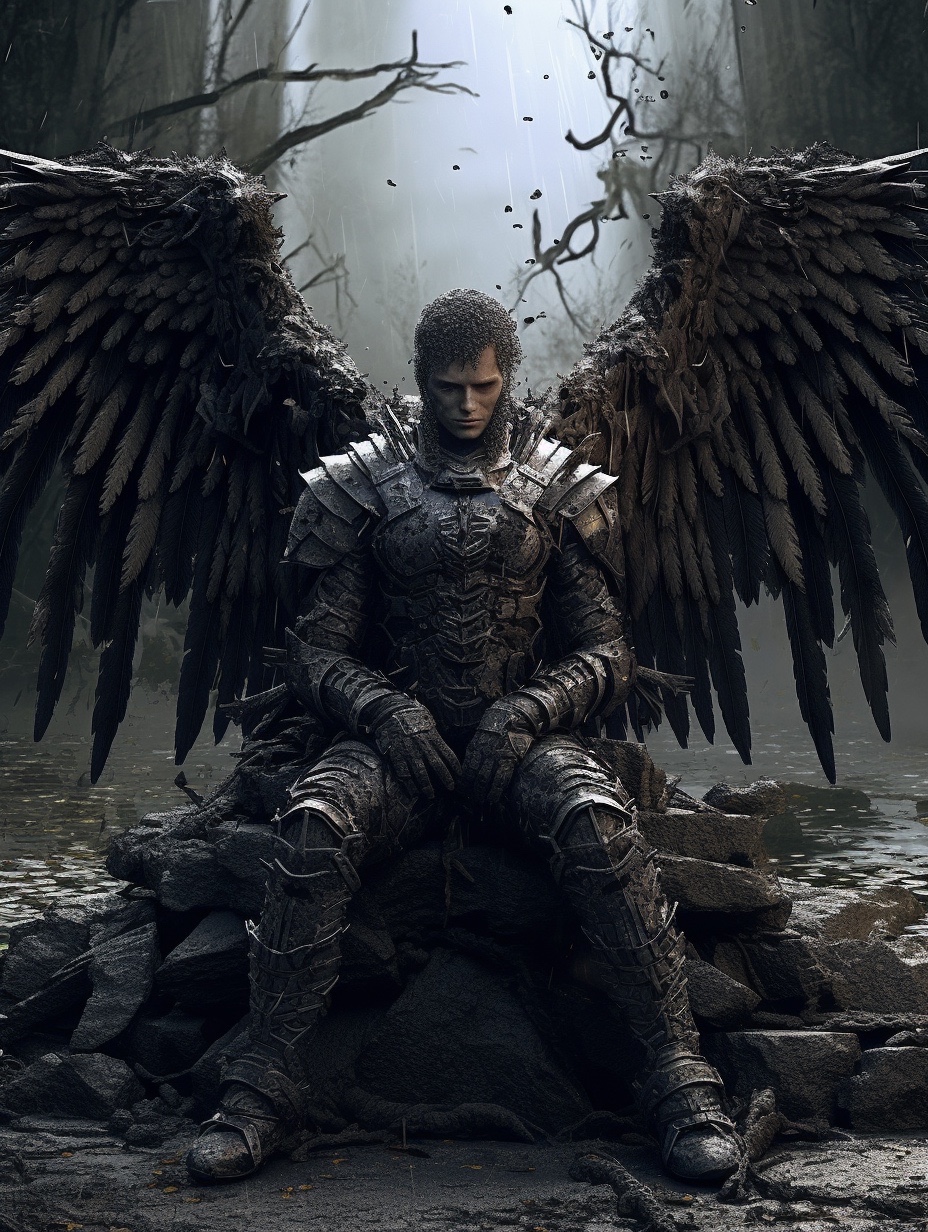 关键词分享: 堕落天使,男性,天使战甲,破败的背景😄