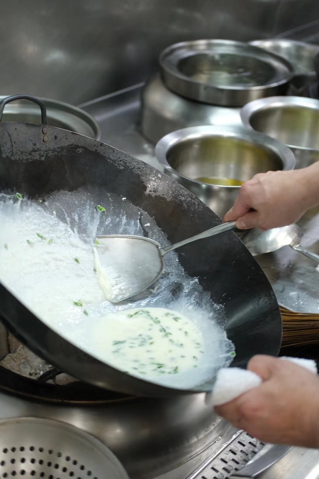 🏄♀️在后厨偷吃苏巍青师傅亲手做的水牛乳炒鲜奶,我一嘴滑倒在夏天的咸鲜细雪里,好吃~
