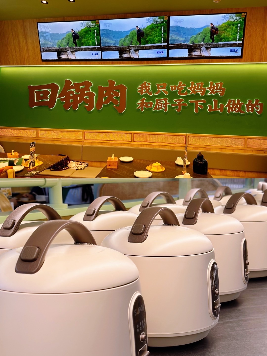 👉招牌回锅肉,挺好吃‼️蒜苗很嫩,肉也不腻,味道挺足。据说有隐藏吃法就是把两盘肉倒进他家的米饭电饭锅,然后拌一下。喜欢的小伙伴可以来试试。👉烧椒皮蛋茄子,堪称全成都最好吃的烧椒皮蛋茄子,擂杵 30 下后青椒、皮蛋、茄子融合在一起,咸香下饭。👉 肥肠血旺,这场菜单里我最喜欢的。肥肠耙糯,血旺嫩滑,汤汁拌上厨子精选五常大米,每一口都体验到麻辣鲜香。👉 蒜香鲫鱼,口味更为独特,骨酥肉嫩,汁水浓郁,越吃越上头!👉姜汁手工肉丸,每一颗丸子都肥瘦均匀。最后再搭配酸梅汤,冰爽解腻又解辣。真的是好吃到上头。