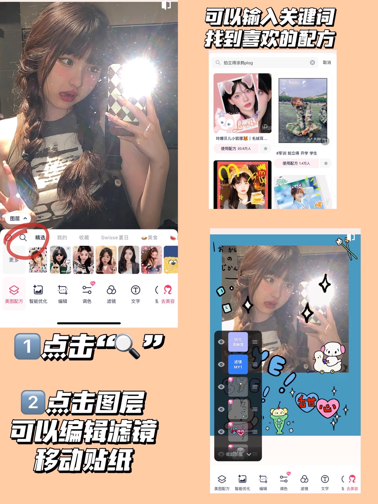 都可以编辑图层 删除滤镜/移动贴纸哦!!