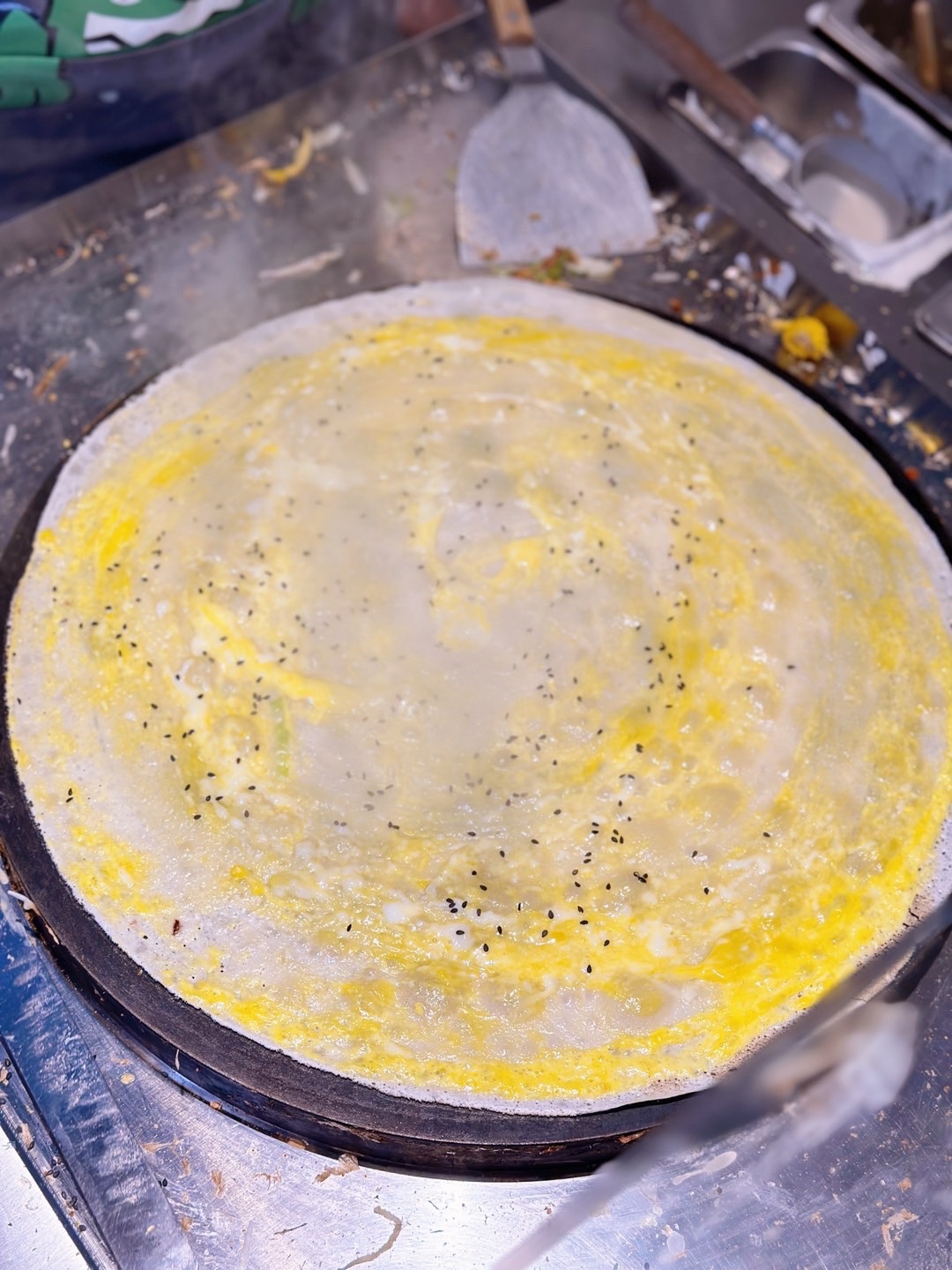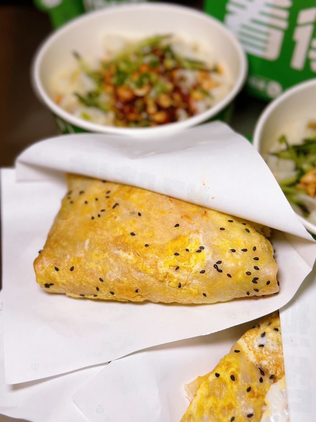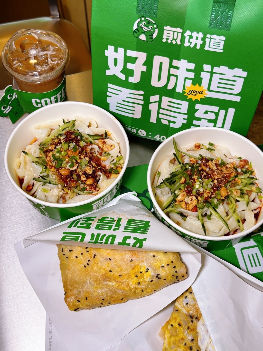 煎饼道(成都天祥广场店)😋在成都发现了一家宝藏小店,干净卫生又健康又料足的煎饼。现场制作,香气四溢😋三大招牌:🉑️孜然里脊煎饼双蛋🉑️肉松培根煎饼🉑️香酥鸡柳煎饼👍人气上榜,任意都好吃。实力允许✅推荐全家福煎饼,配料丰富,咬上一口大满足,幸福感爆棚。👉搭配乐山风味熬制的豆腐脑,白嫩豆花加入粘稠芡汁,每一口都超丝滑,这个味道我简直太爱了。🉐️秘制凉皮,牛筋面,口味也很棒,妥妥的打工人必备。最后再来一杯咖啡,美哉🤟🏻