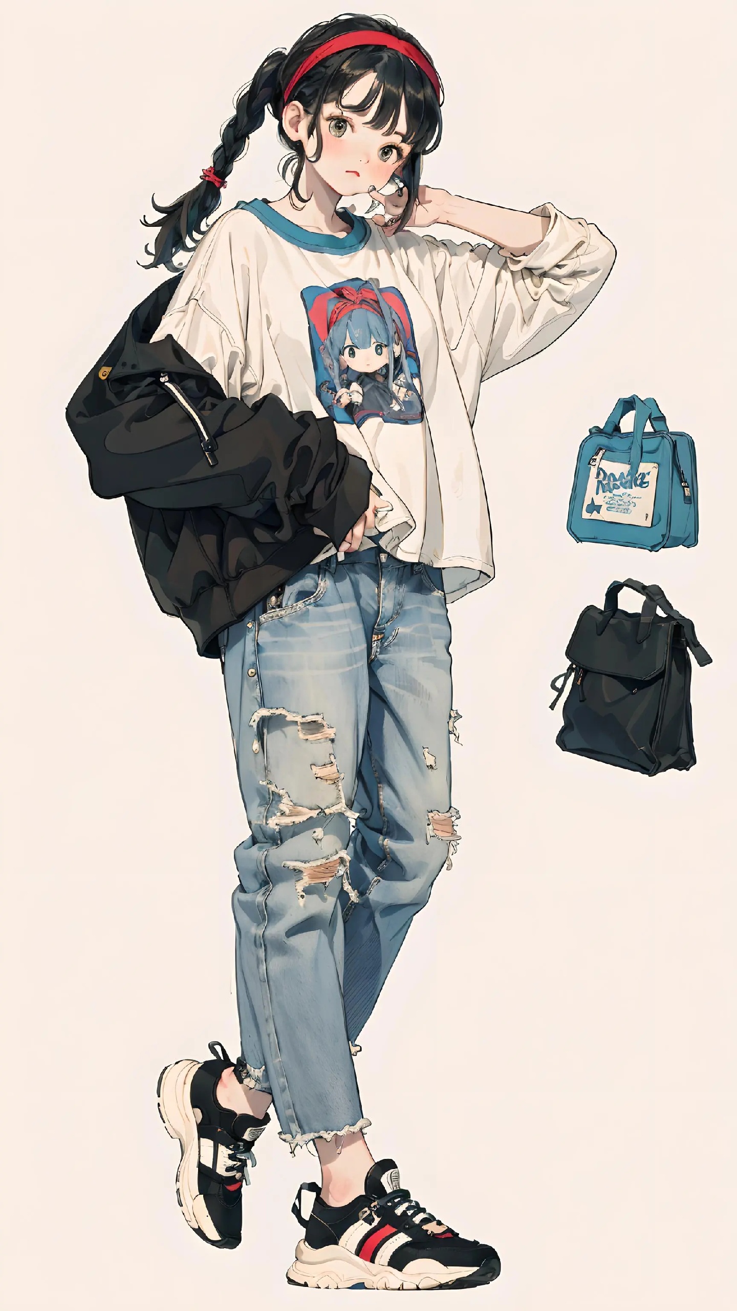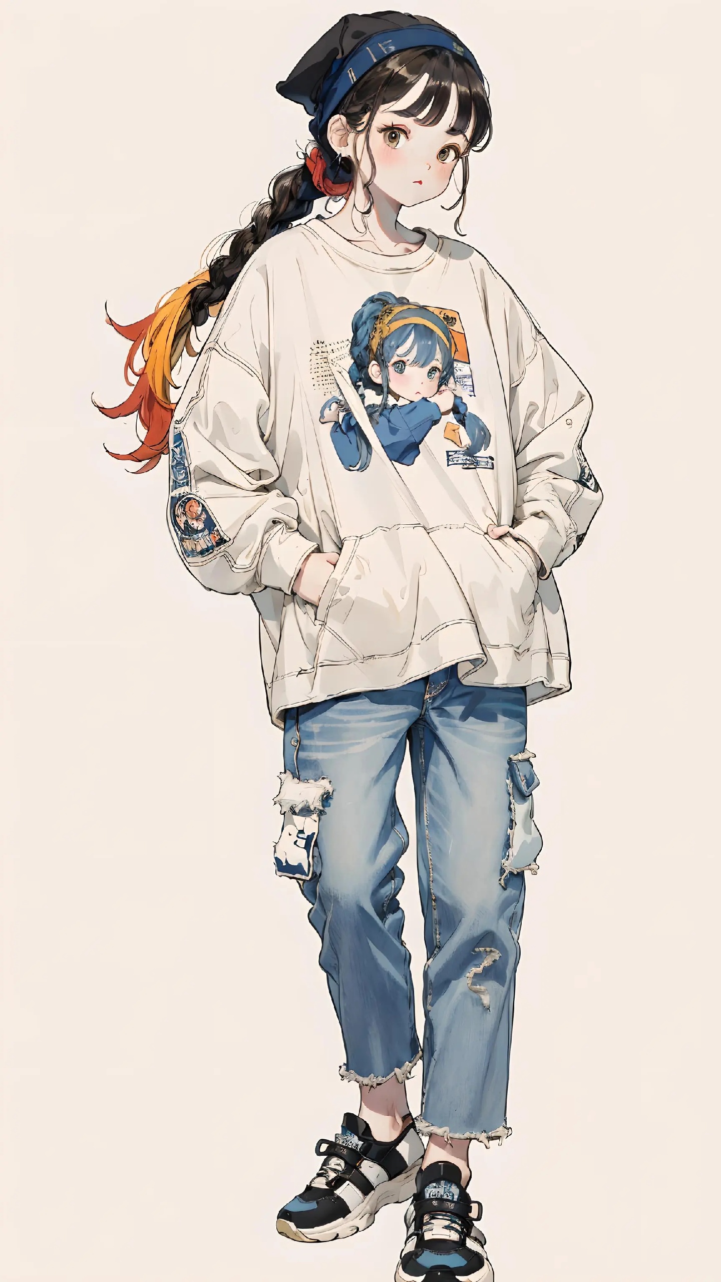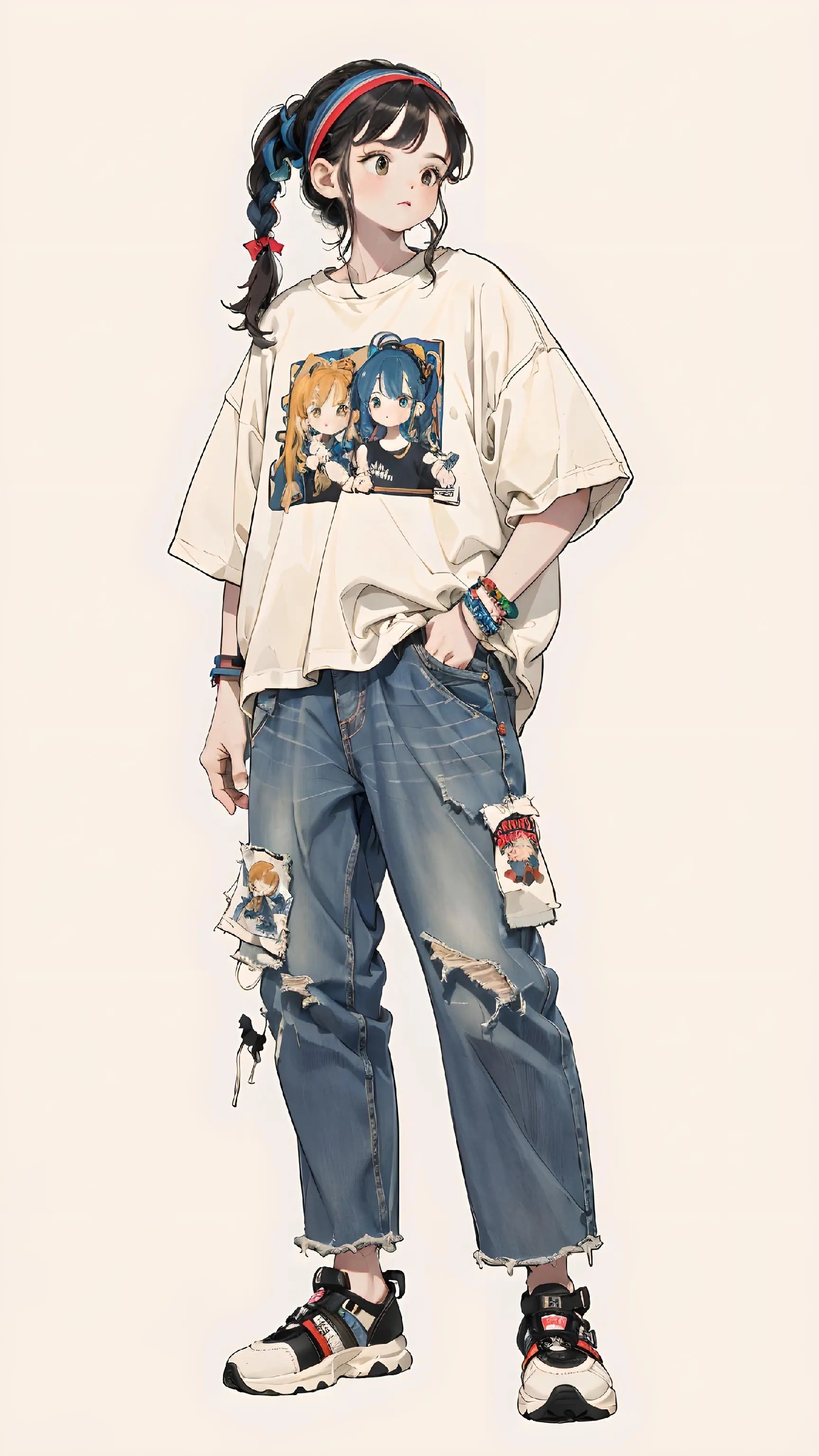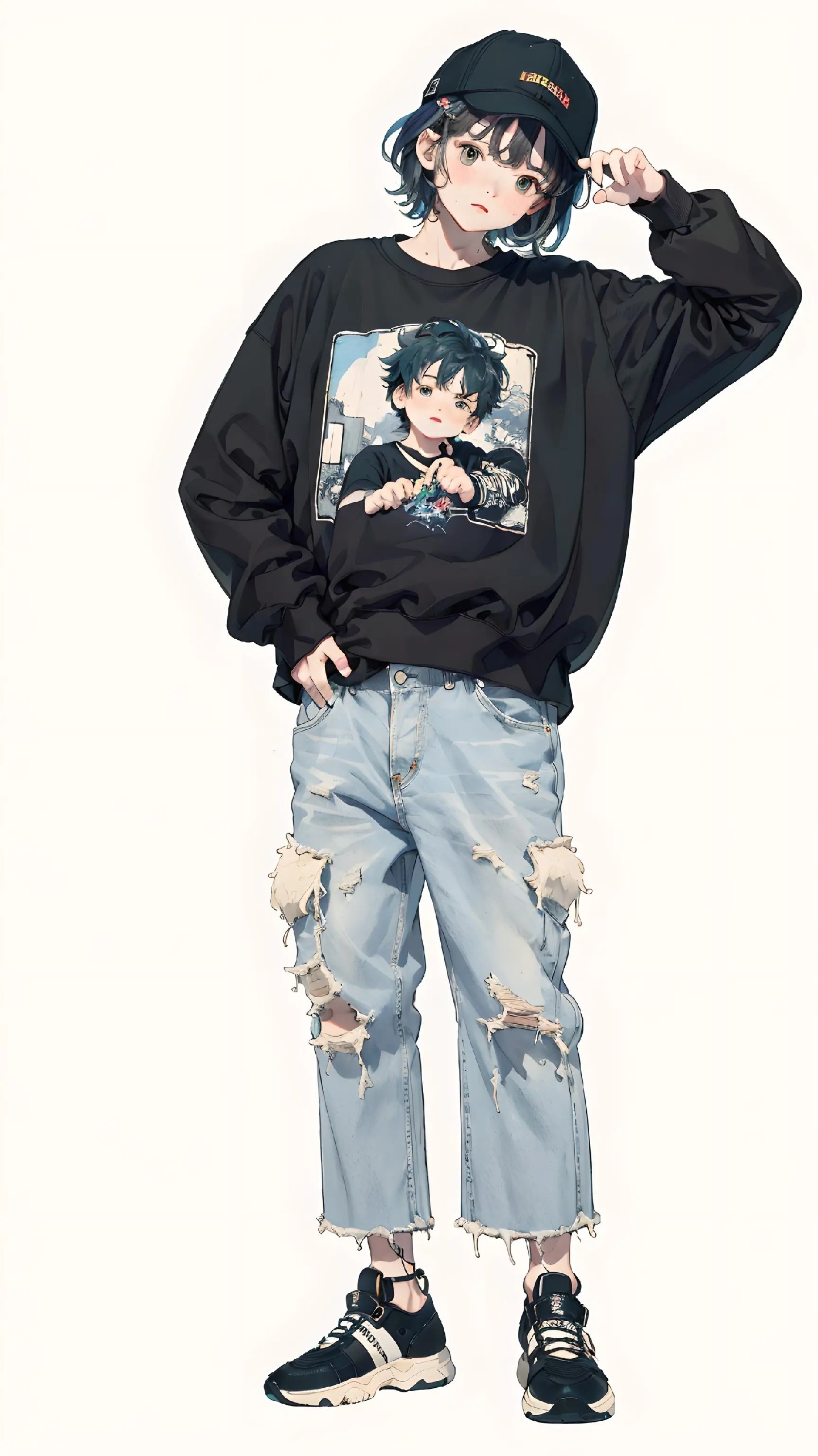宽松上衣加破洞牛仔裤👖