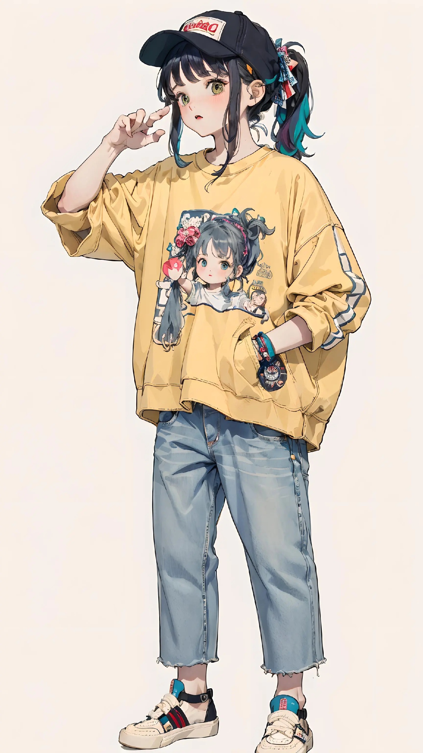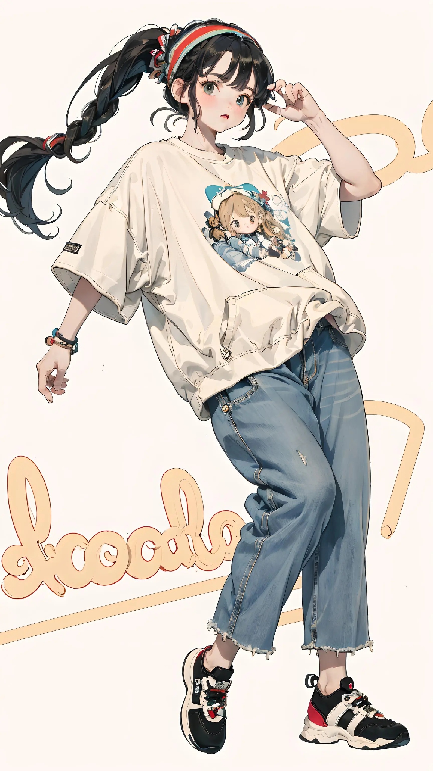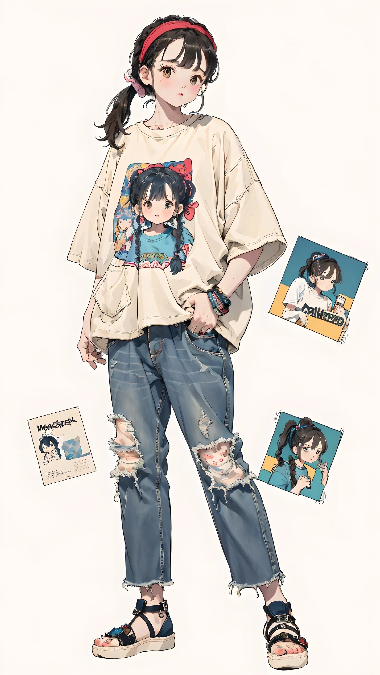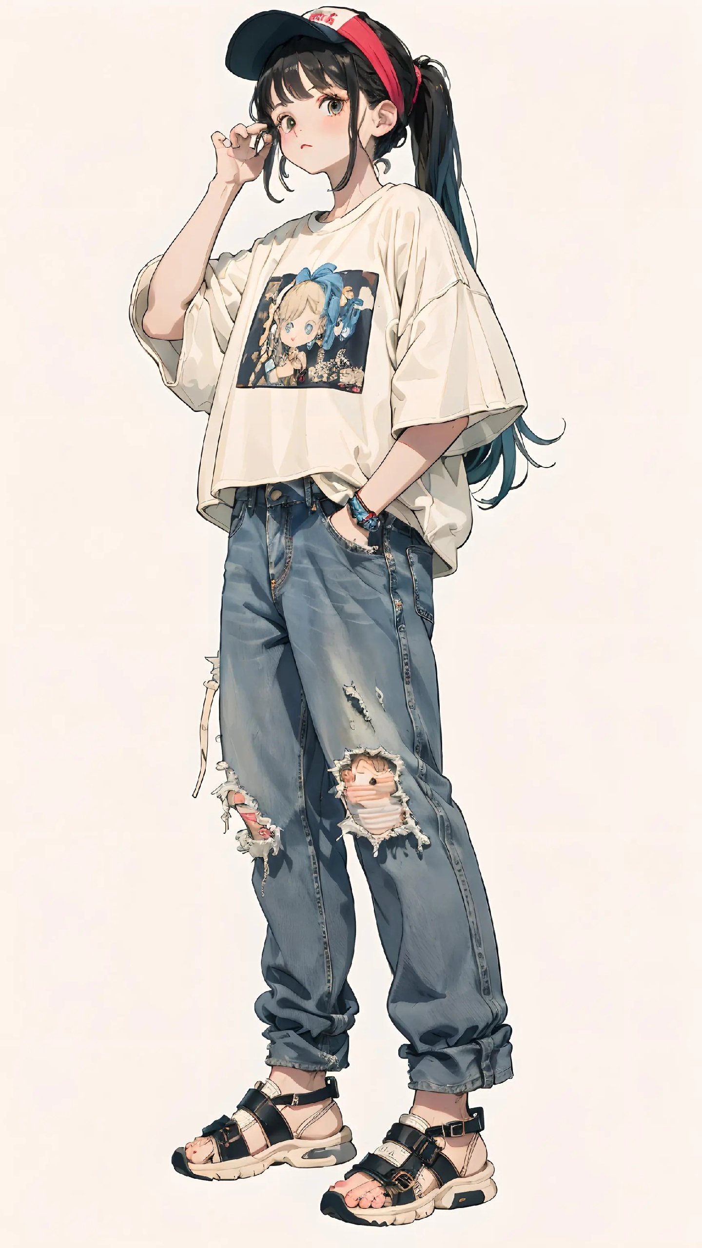 宽松上衣加破洞牛仔裤👖