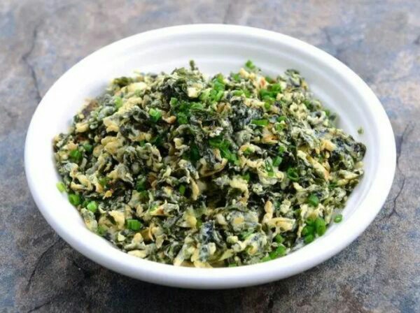 炒好后盛出,撒点新鲜葱花,这道菜就做好了,简单又好吃,比紫菜鸡蛋汤好美味。