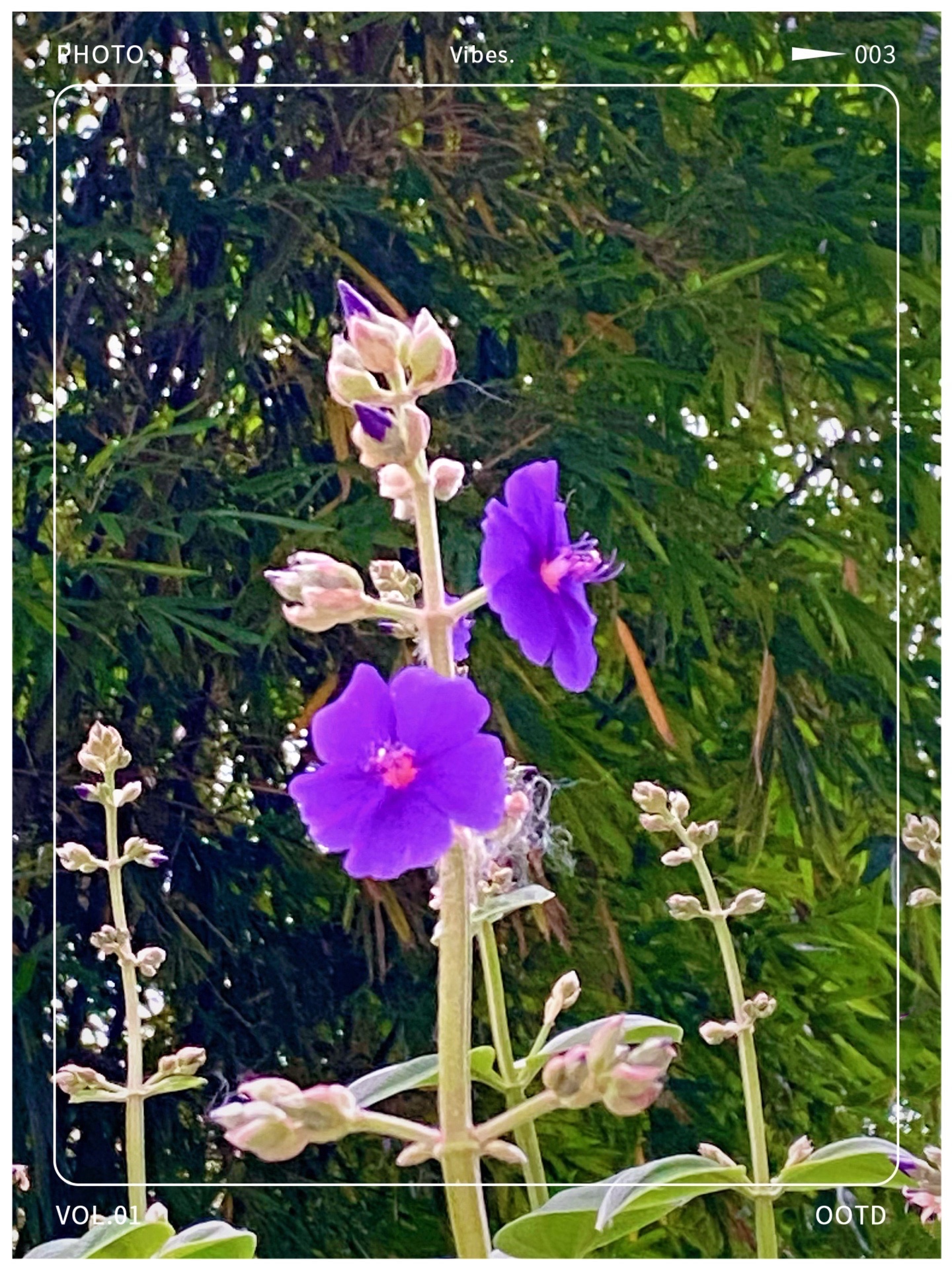 🌸“蒂牡花”又名巴西野牡丹,也称蒂牡丹、紫花野牡丹或艳紫野牡丹。它的花语:自然。