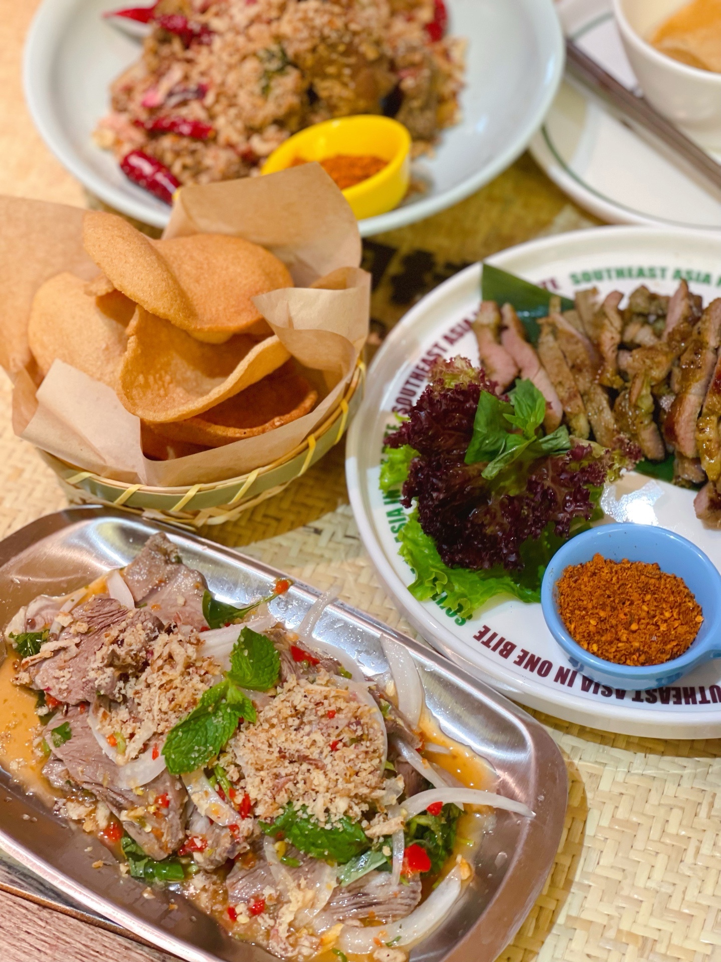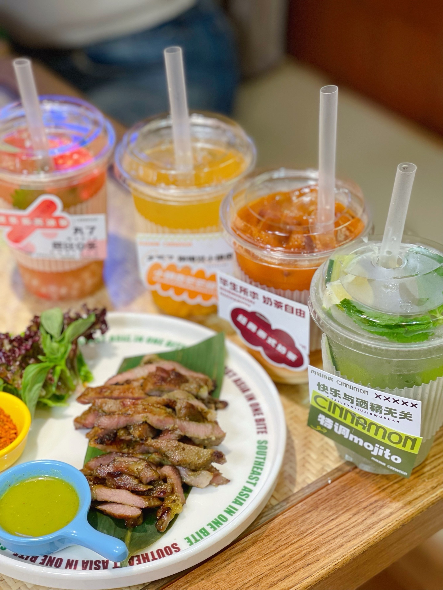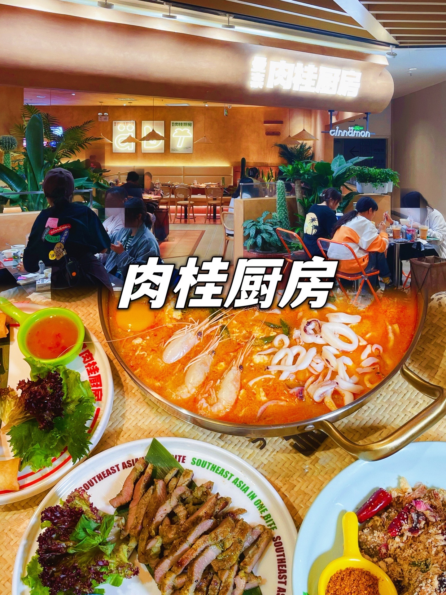 终于‼️等到✨曼奈·肉桂厨房✨就在大悦城西北首店!人均只要六七十尝遍东南亚美味😋食材丰富的豪华冬阴功妈妈面汤底浓郁美味很开胃,太爱了!泰国街头炸排骨,炸春卷,暹罗咖喱虾,独家秘制香茅梅花肉,印尼雅加达炸煎大虾每一款都闭眼点而且都很好吃!还有高颜值的🍮🥤泰式经典奶茶,芭乐紫苏冰茶,芒果🥭西米露,椰椰斑斓冻!店里绿植萦绕清新自然很有氛围。肉桂厨房6月18正式开业特惠每天10份6.8折双人餐99元,冲!