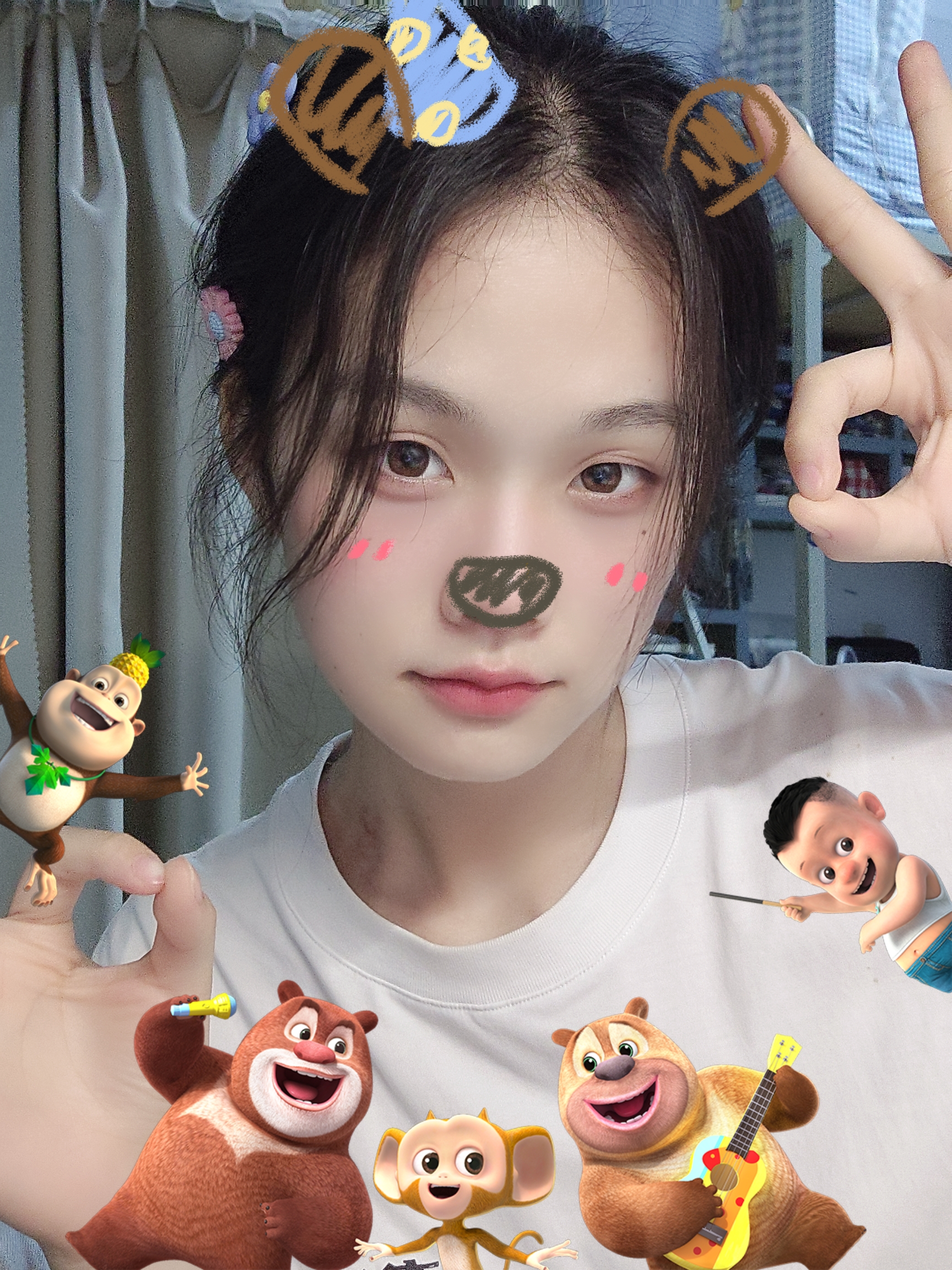 挑战在熊出没里过六一!这个欢乐熊出没的贴纸模版好有意思呀,让我一下子想起以前小时候坐在电视机美美看动画片的感觉~美🧂📷让我一键回到小时候了啦,真的好减龄!六一朋友圈照片已经准备好了