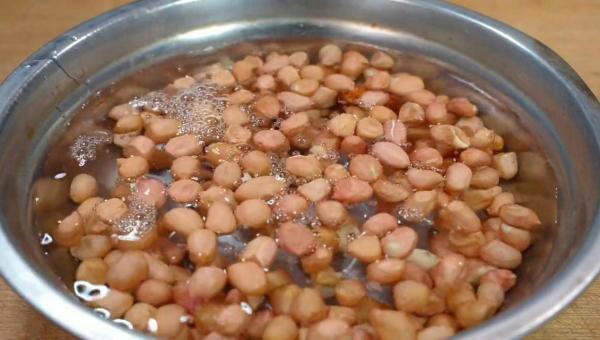 1.先把花生米倒入盆中,倒入清水浸泡半个小时,