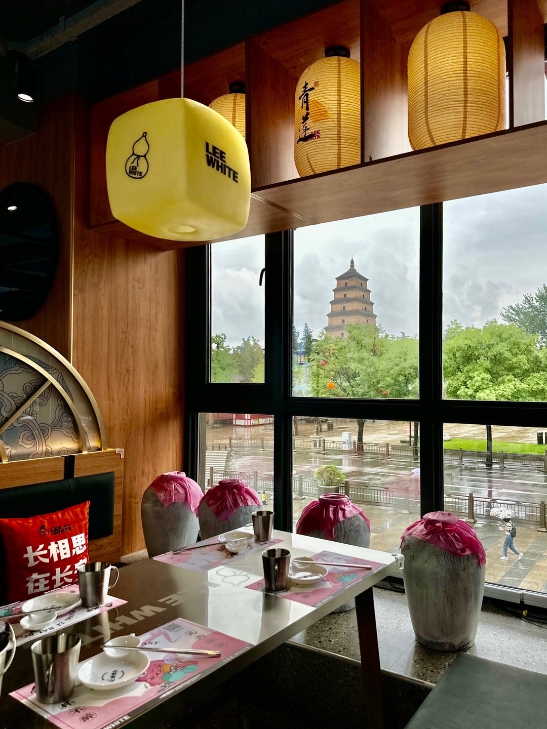 💦在大雁塔脚下听雨、看塔、吃肉、喝酒,这应该就是李白想要的生活吧!