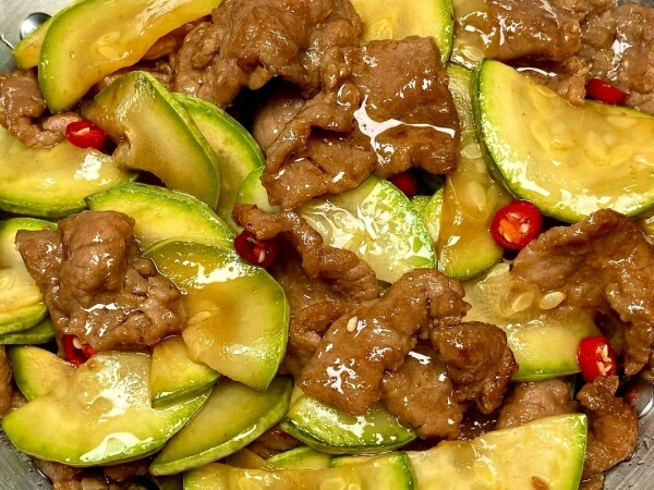 食材准备:西葫芦、瘦肉、蒜末、小米辣。