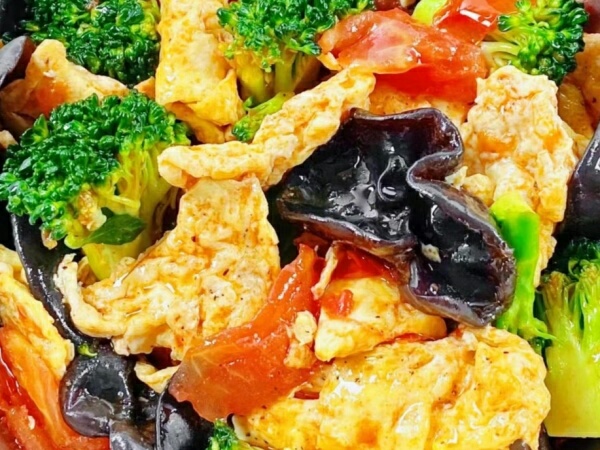 食材准备:番茄、西兰花、木耳、鸡蛋、黑胡椒粉。