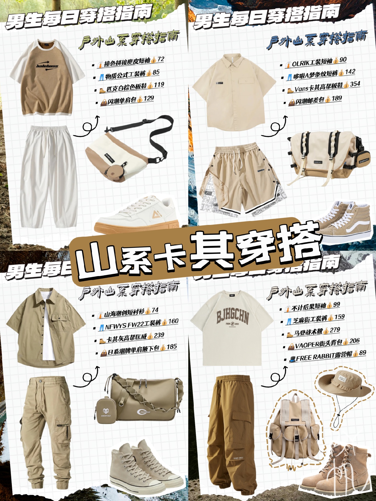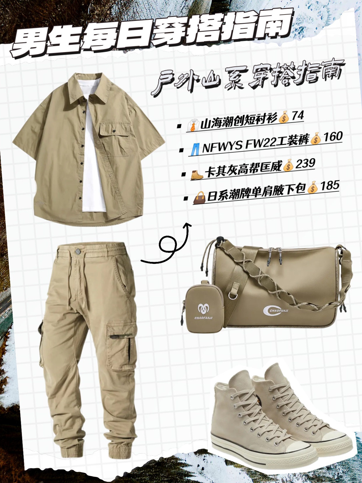 最近比较🔥的山系穿搭是我的最爱🧸,由于卡其色整体比较低调,也经常被用在山系📷里面,所以我索性出一期全是卡其色系的穿搭🏞️,供不喜欢花哨的撞色穿搭的男生参考🌄,整体效果比较沉稳🗻,但又不失层次,不显得土🏝️。