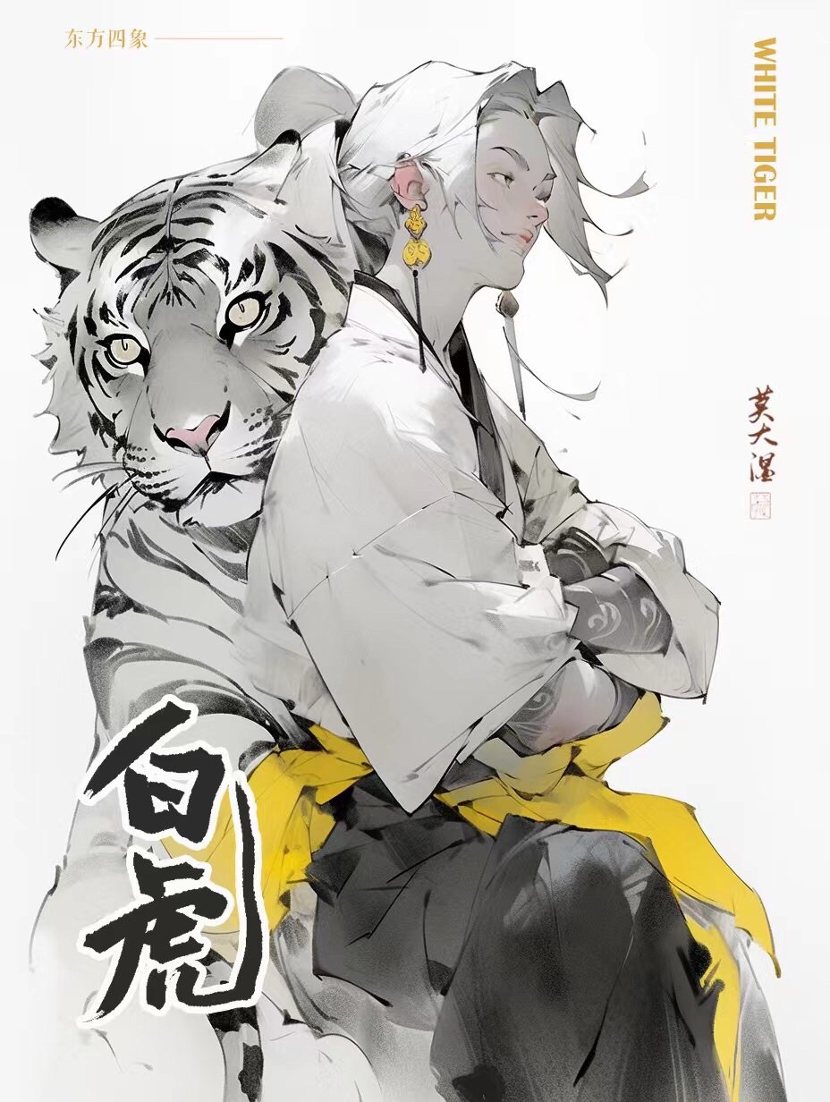 白虎,监兵神君,镇西方。五行属金,代表秋季,掌兵伐。