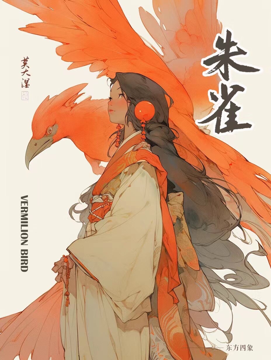 朱雀,陵光神君,镇南方。五行属火,代表夏季,象征礼德。