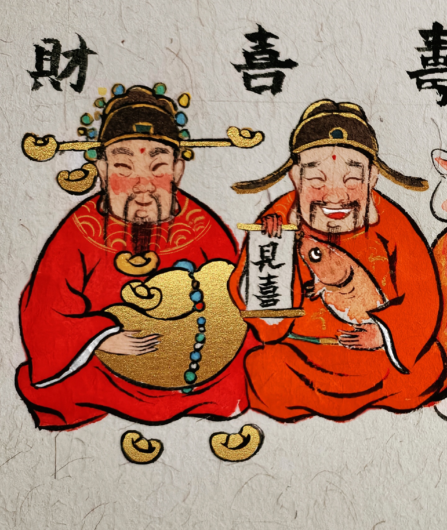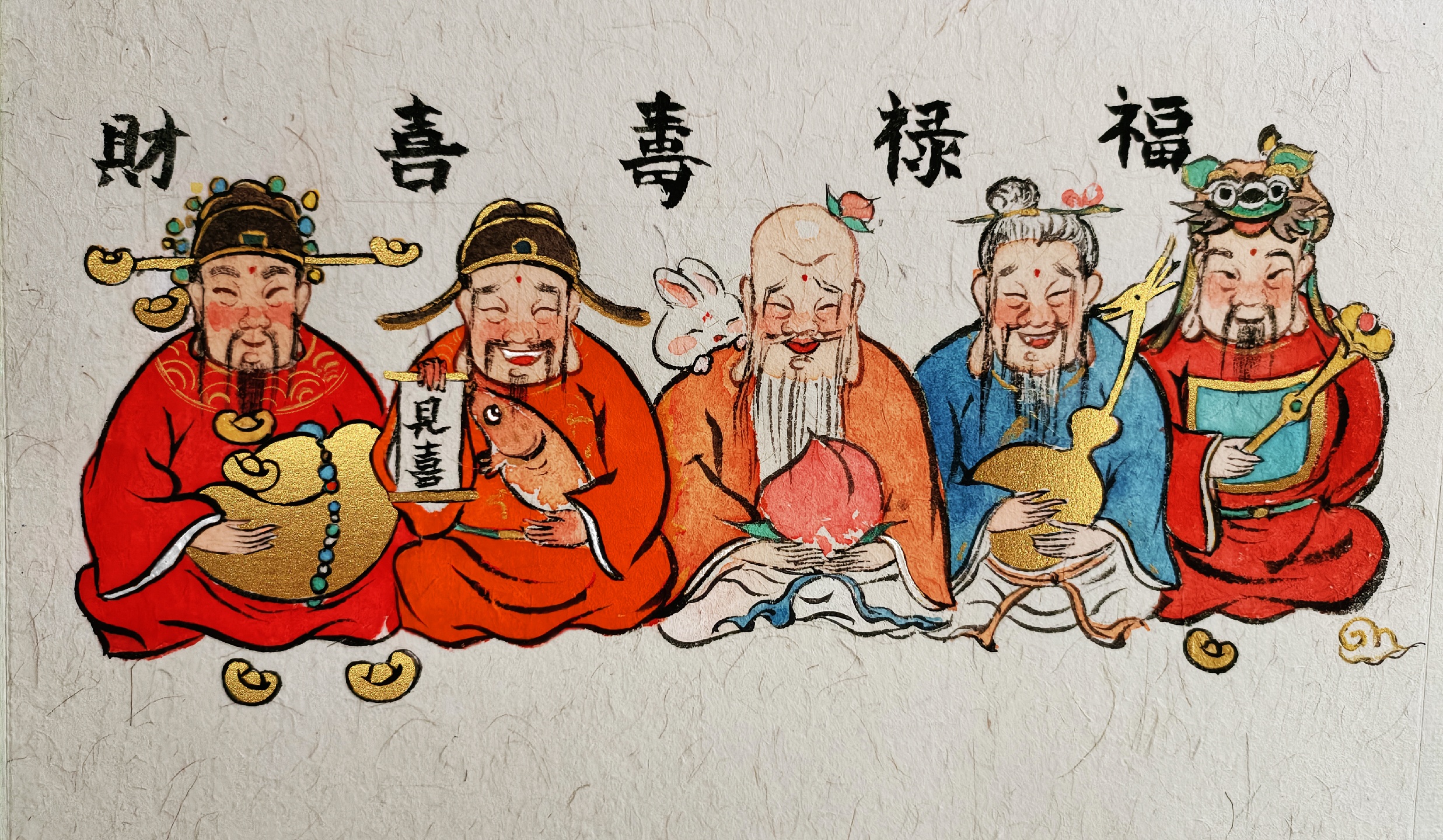 福禄寿喜财分别代表了对幸福、升官、长寿、喜庆、发财五个方面的-美图社区-美图秀秀