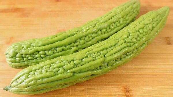 2、苦瓜洗干净,切成3厘米的长段,去掉瓜瓤和白膜,放入开水中煮1分钟,捞出过凉水,沥干水分。在苦瓜内部撒点干淀粉,把肉馅塞入苦瓜里,压紧后放入盘中。