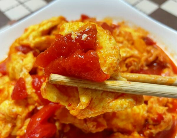 3、倒入炒好的鸡蛋块,快速翻炒均匀,让每块鸡蛋都裹上浓郁的番茄汁,淋入适量水淀粉勾芡,汤汁浓稠后撒上葱花,即可出锅。
