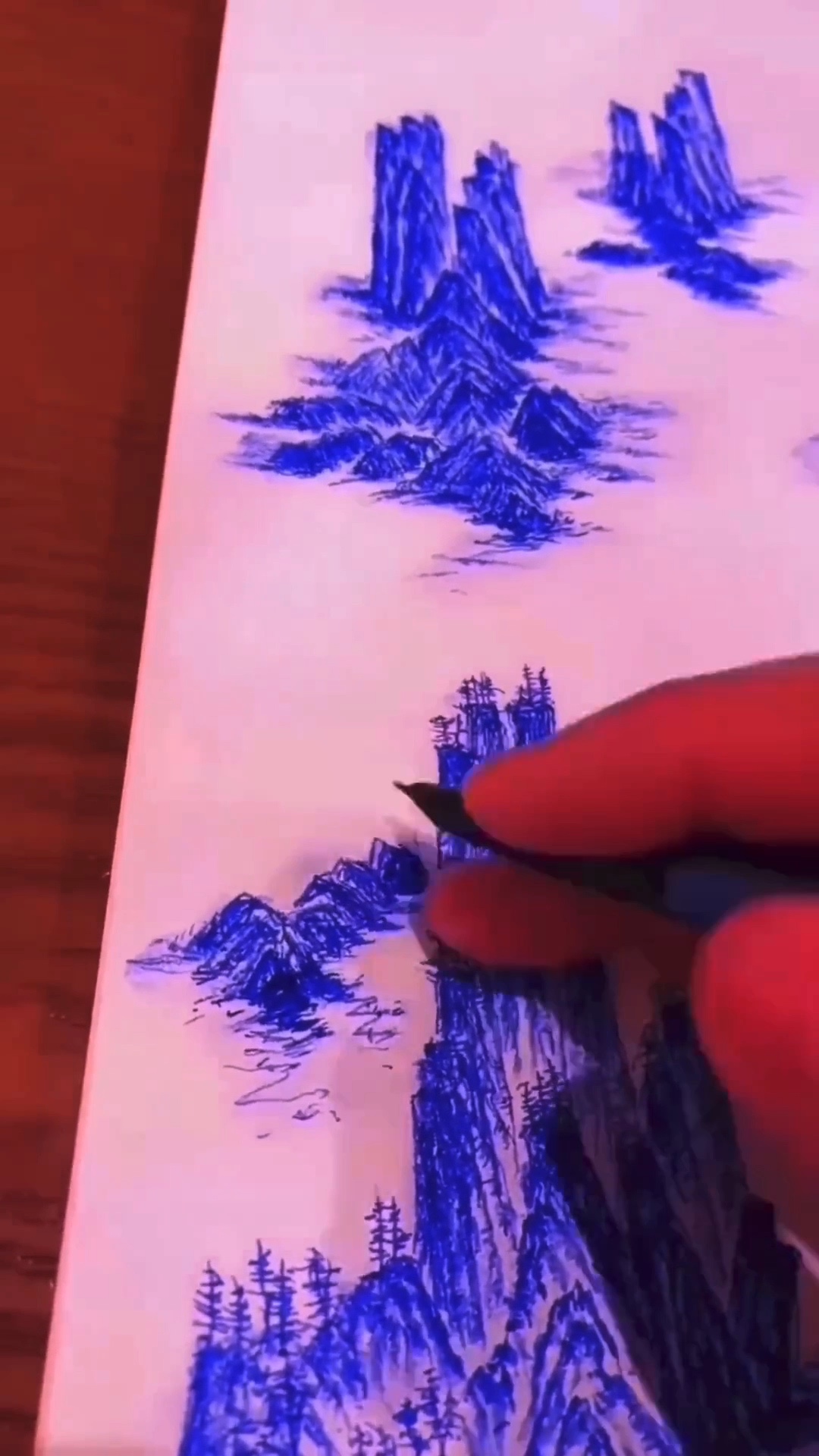 自创钢笔风景山水