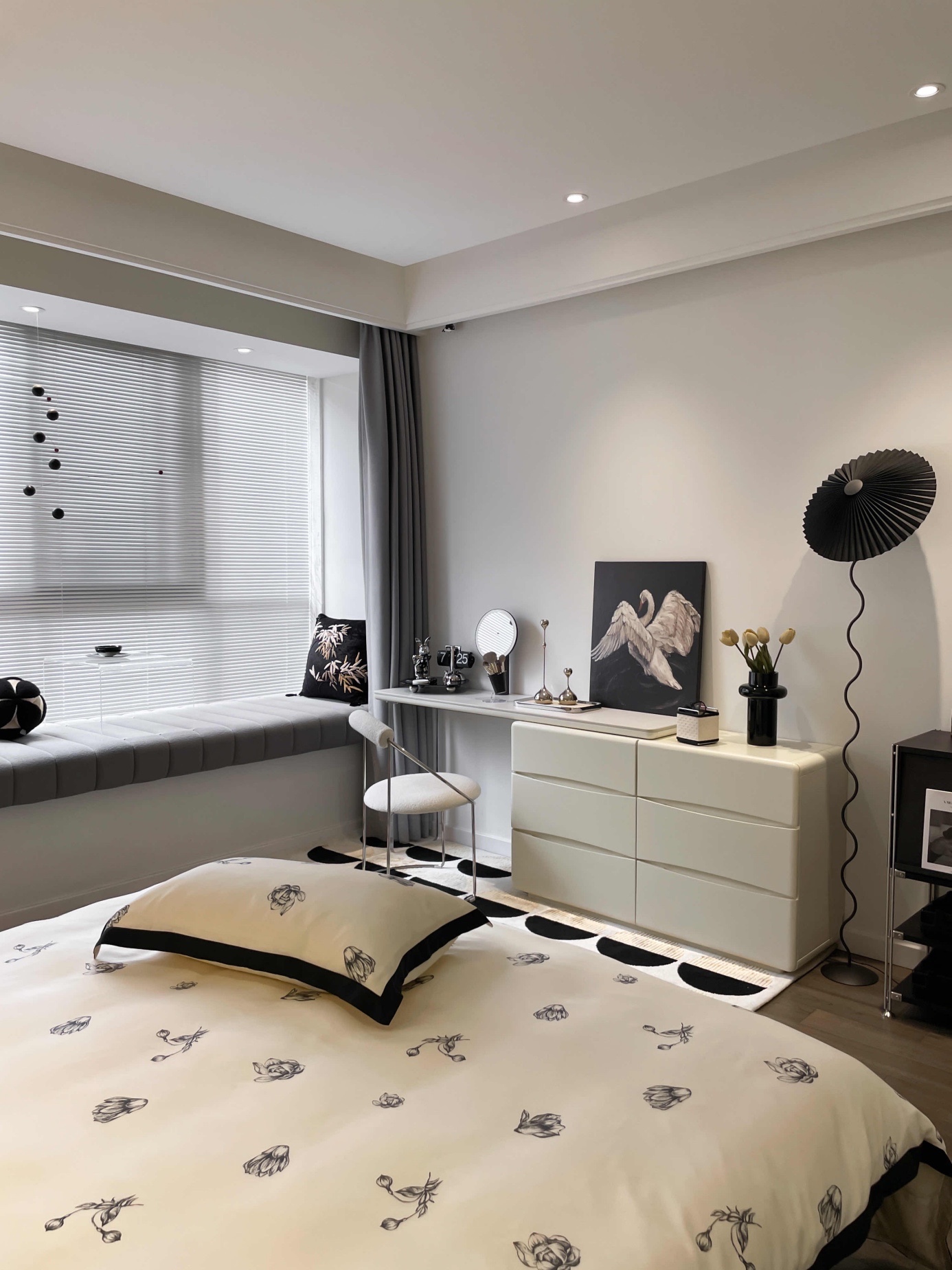 之前卧室一直走黑色系,现在再看奶油风会让人眼前一亮👀