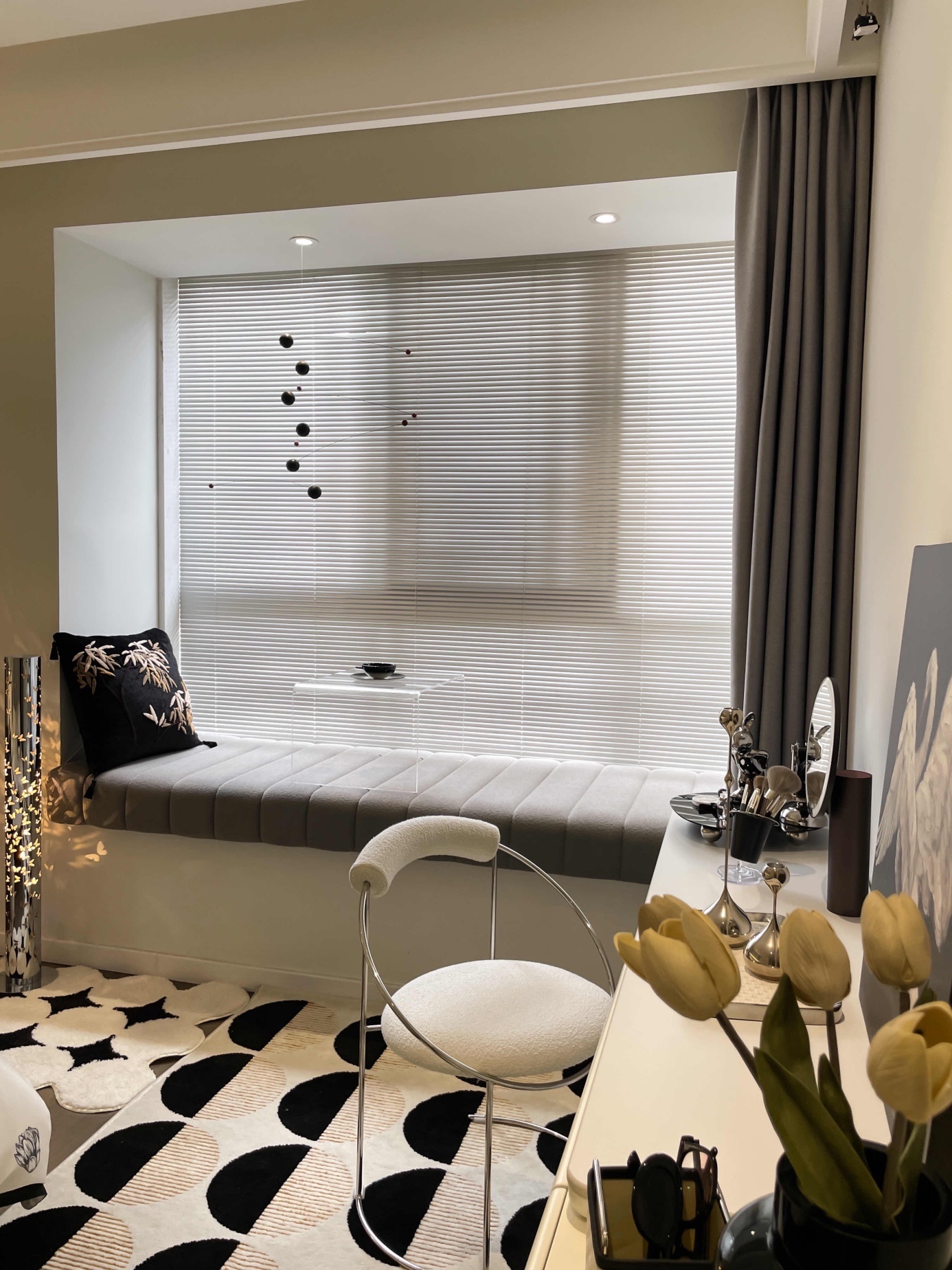 不得不说飘窗垫+梳妆台