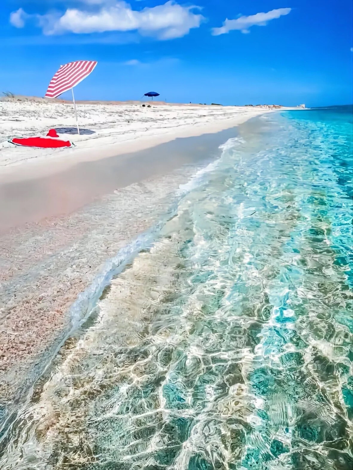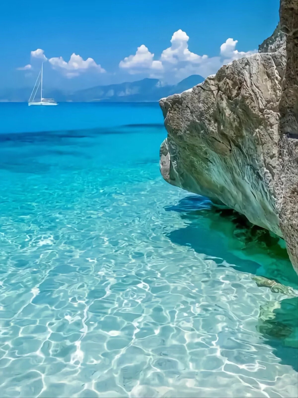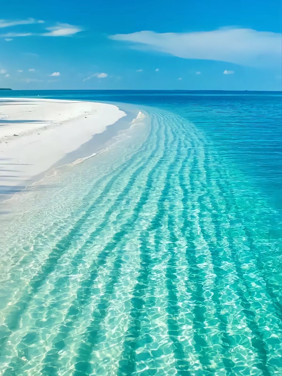 #旅途中的美景 清澈透明的天然海域,蓝天白云下的