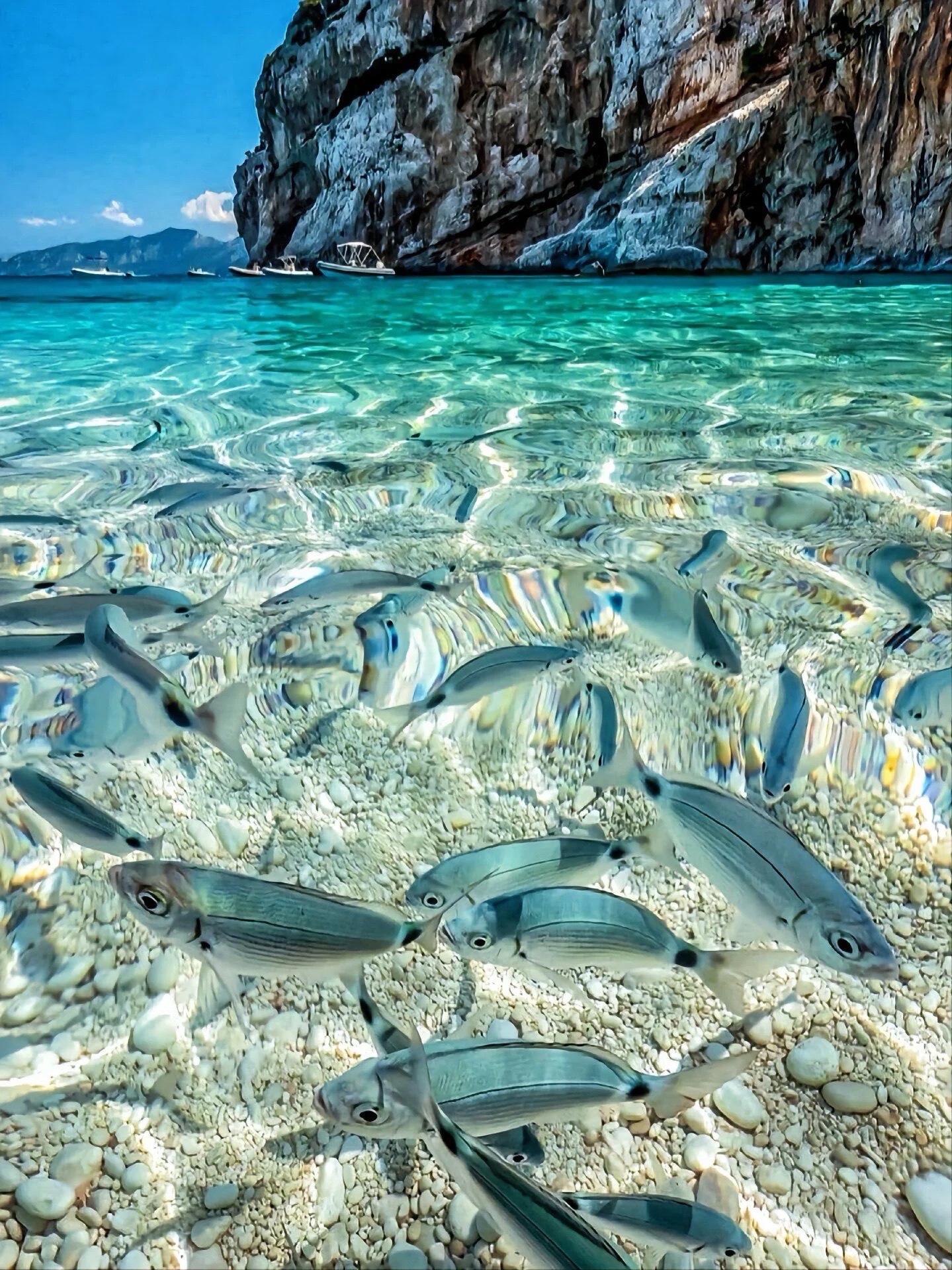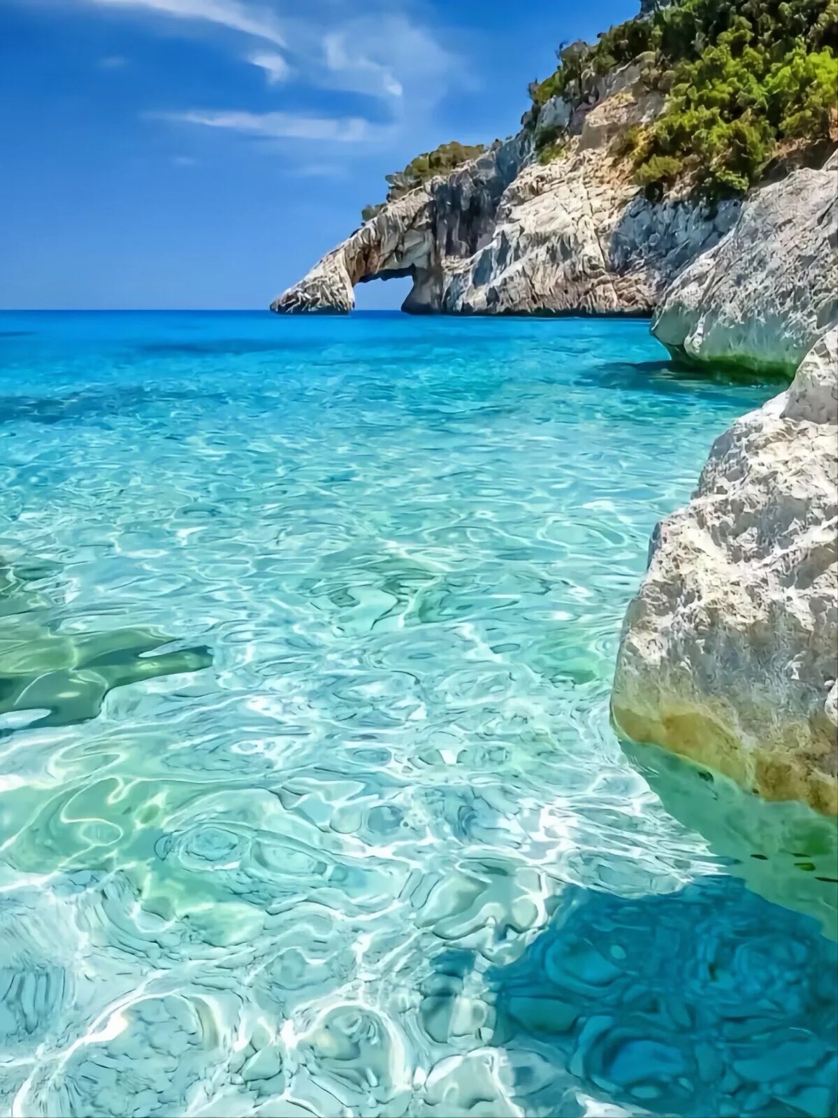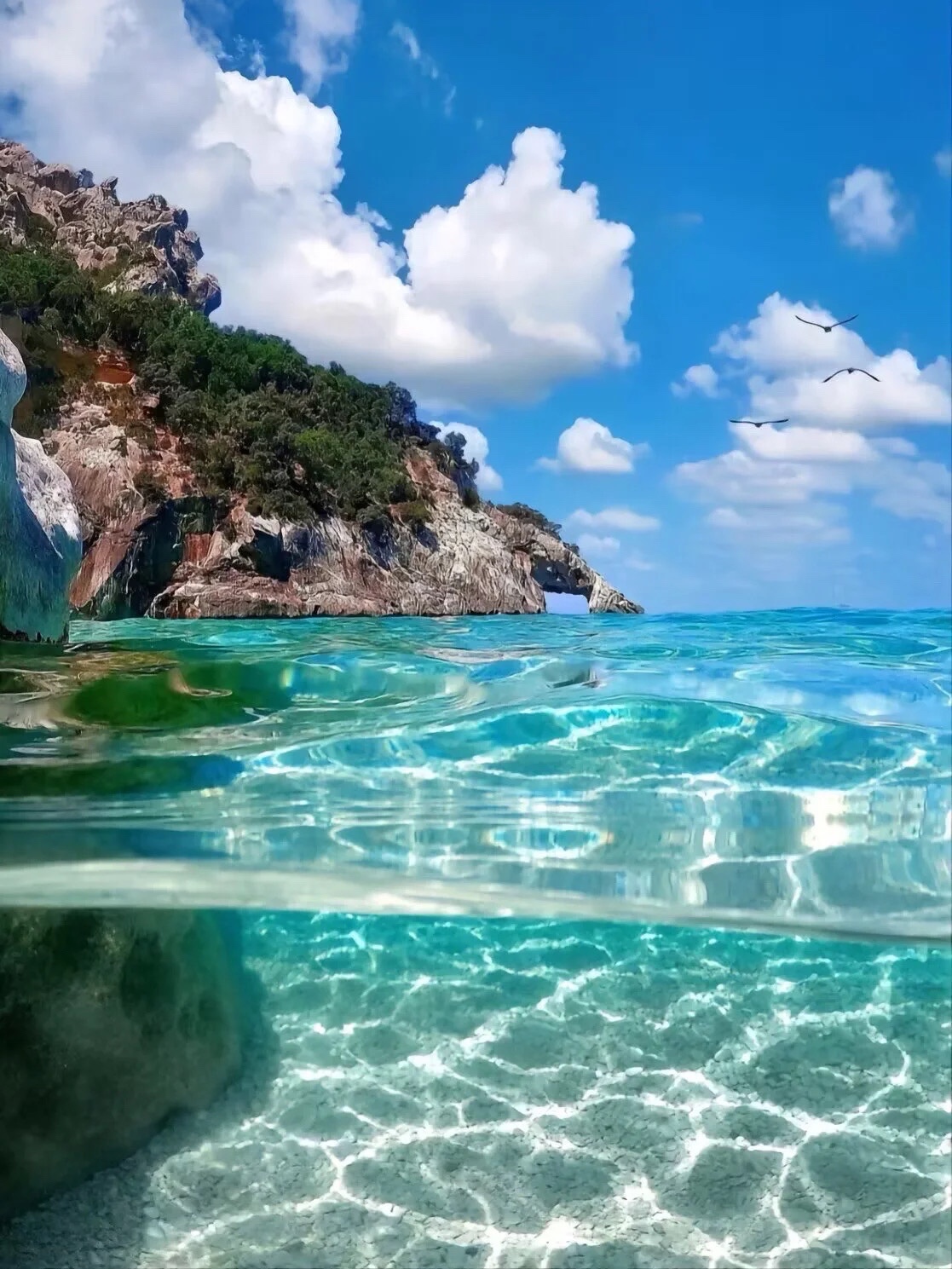 #旅途中的美景 清澈透明的天然海域,蓝天白云下的