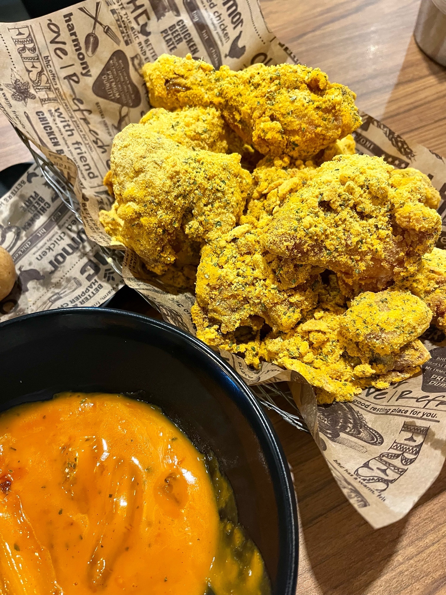市区有很多美食,而且距离都不远,我们正好那几天都住在市区里,觅食就很方便!济州的炸鸡真的好好吃🤤不夸张,可以说是我吃过最好吃的炸鸡了[生气R]点的芝士炸鸡,等了很久,分量是四五个人的量,我们两个人根本吃不完[生气R]炸芝士球也绝好吃