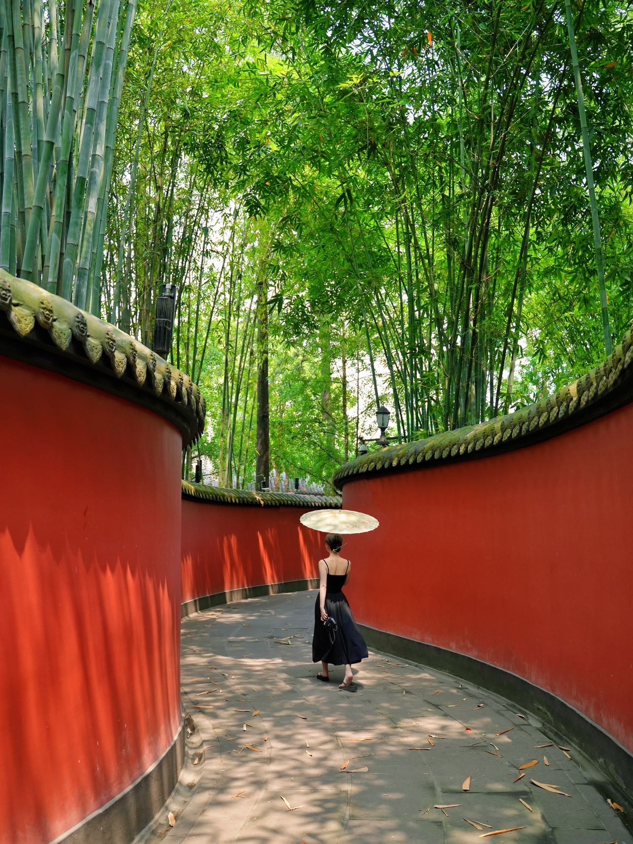 1️⃣武侯祠两侧的竹林红墙夹道