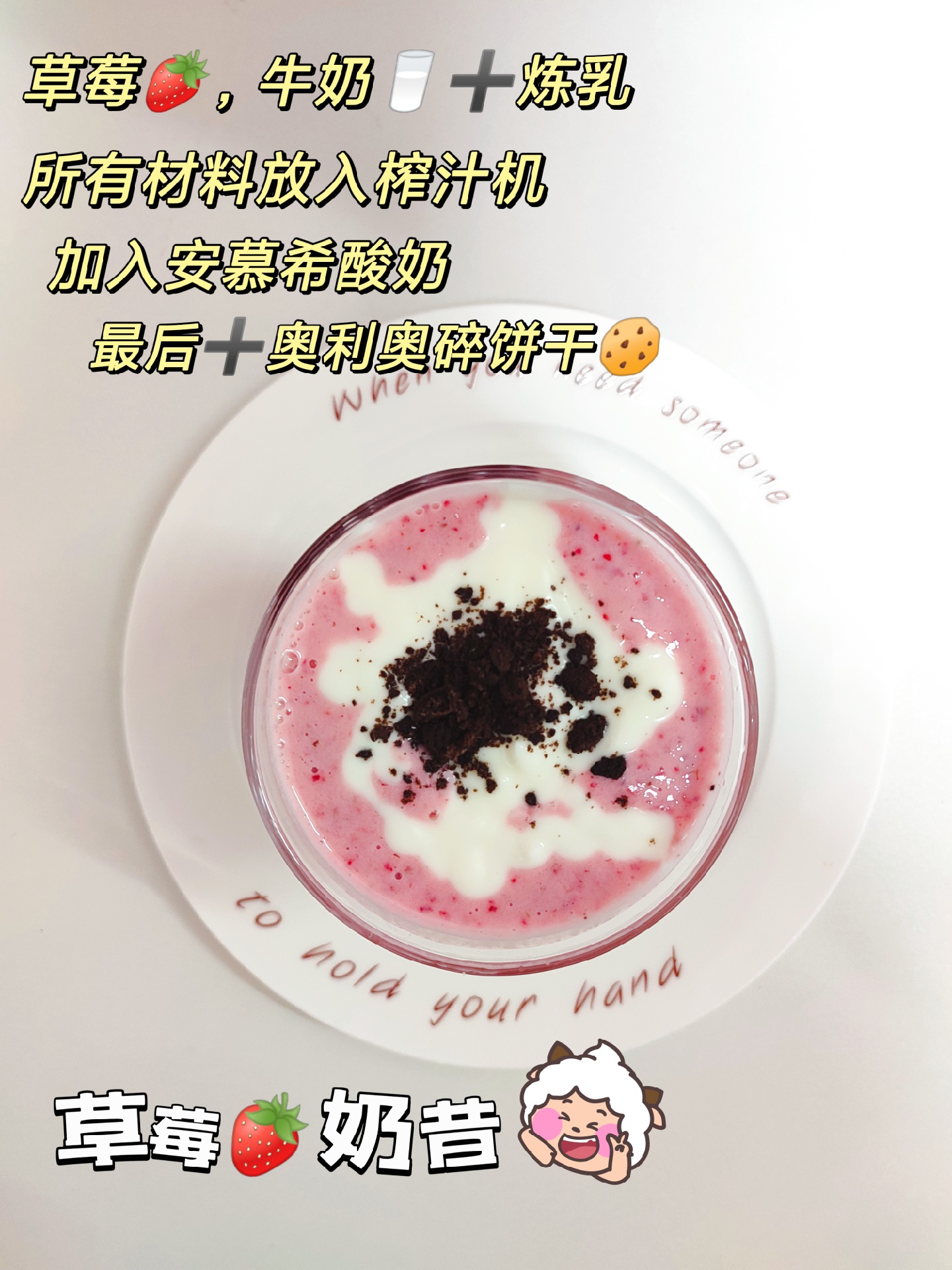 洒些奥利奥碎饼干🍪,超好喝的草莓奶昔就做好了✌🏻