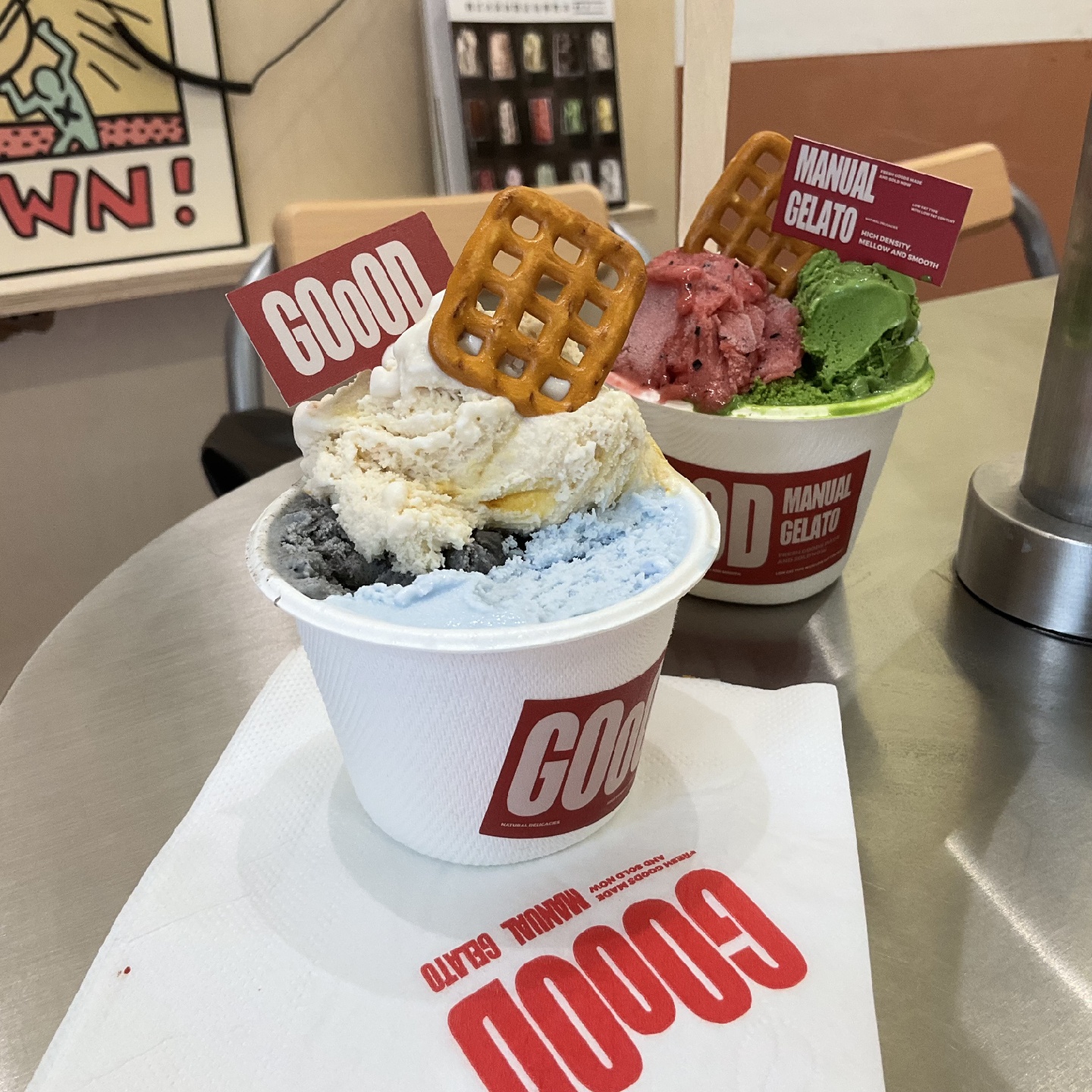 B&C开心果奶油车轮泡芙|A Giraffe coffee&Coca热可可|GOoOd gelato三拼口味|Atacama coffee&friends野温泉|海比甜开心果拼树莓gelato|1983面包坊芒果拿破仑|大酉香草奶酱可颂|酣春草莓巴斯克|shun bistro酒酿桂花芝士豆腐