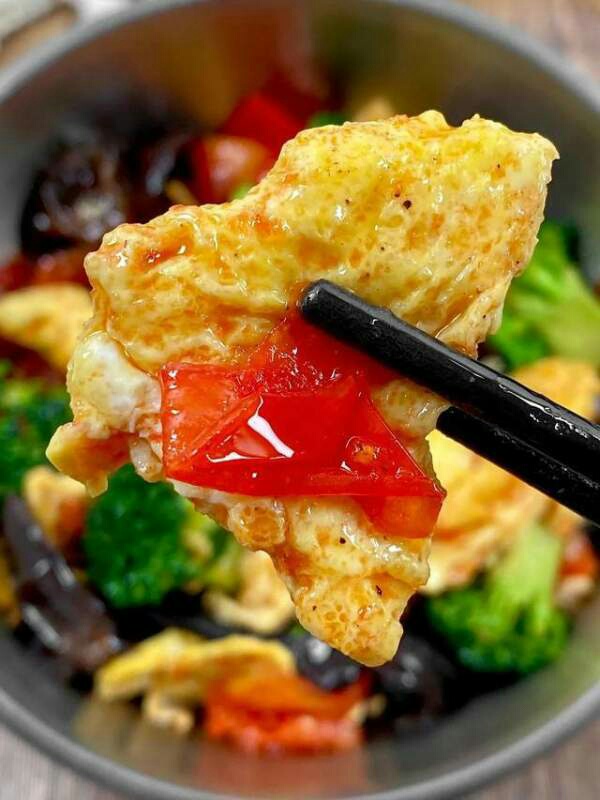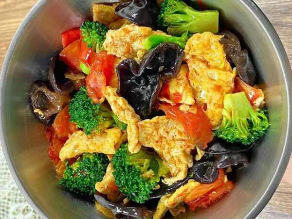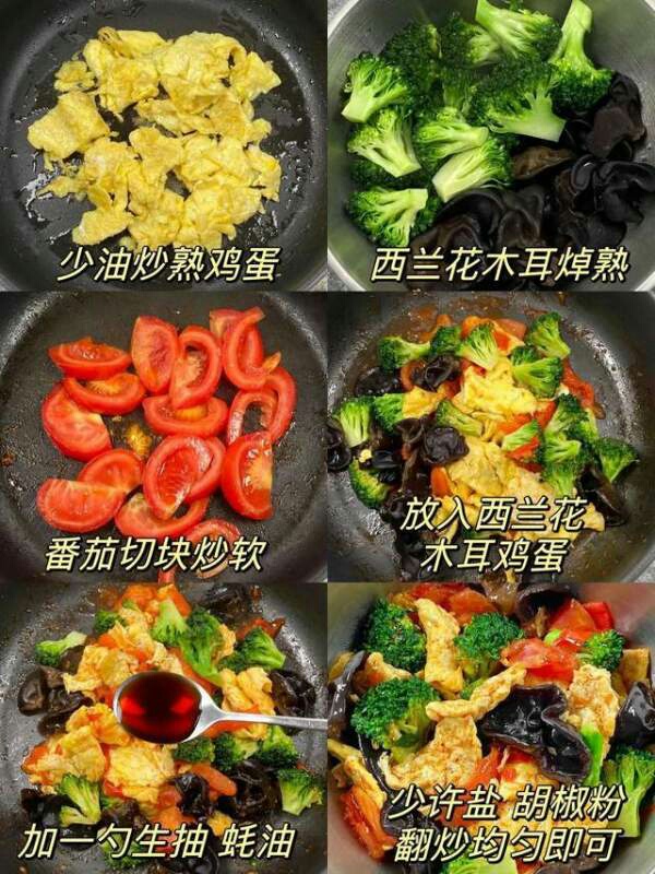 【西兰花炒鸡蛋】主要食材:鸡蛋,西兰花,黑木耳,西红柿,生抽-美图社区-美图秀秀