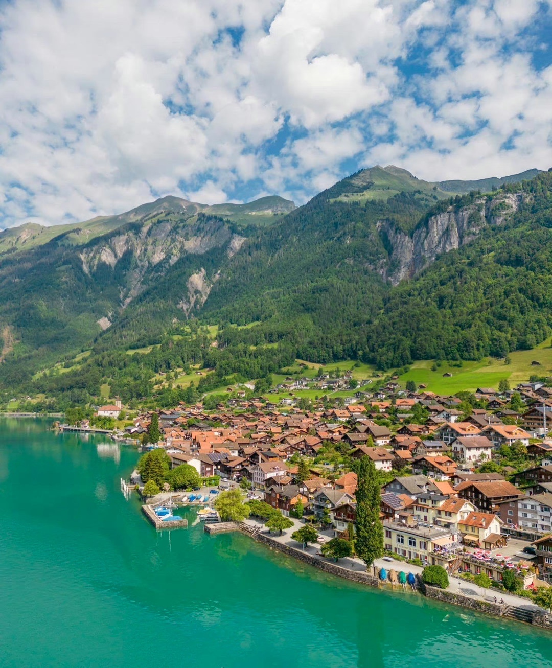 布里恩茨湖的美景 让布里恩茨小镇 Brienz 的夏天 心旷神怡 神清气爽 浪漫的Brunngasse 街 曾被誉为 欧洲最美的大街 之一 闻名世界 街上大多数房子始建于18世纪 还有许多栩栩如生的木雕做装饰 布里恩茨以木雕出名 历史悠久 至今仍有一所教授雕刻和小提琴制作的学校