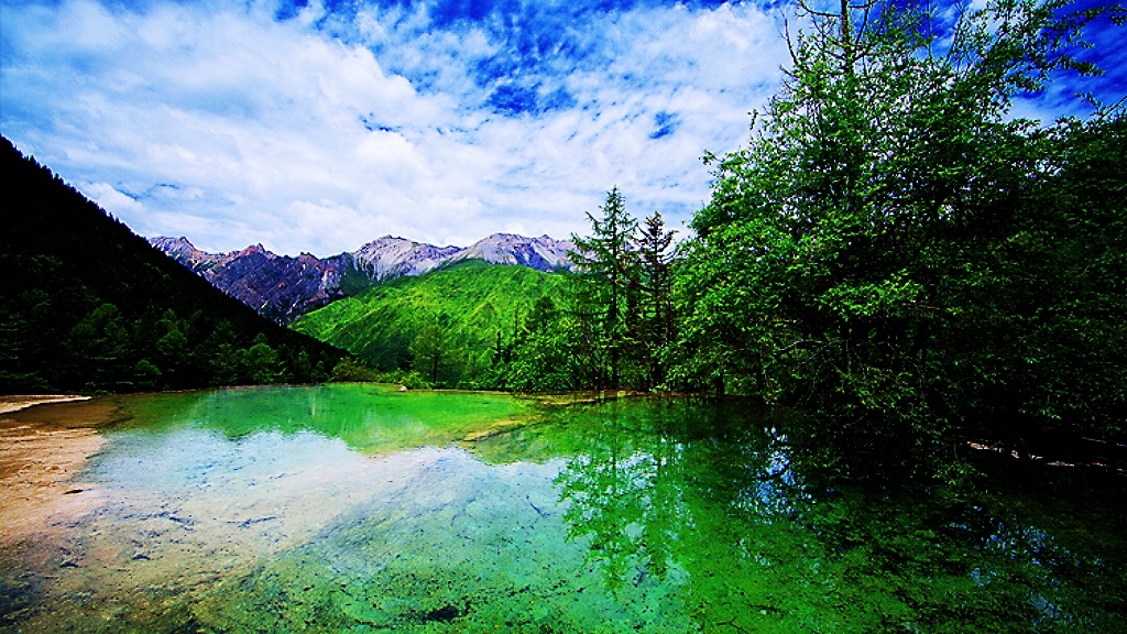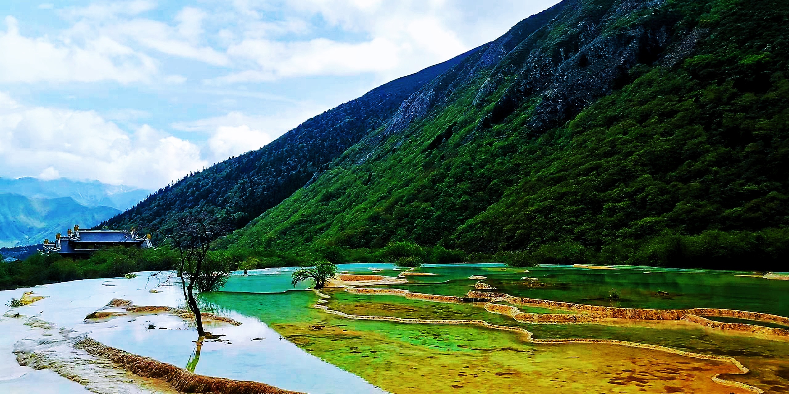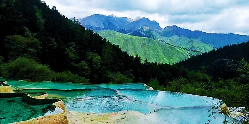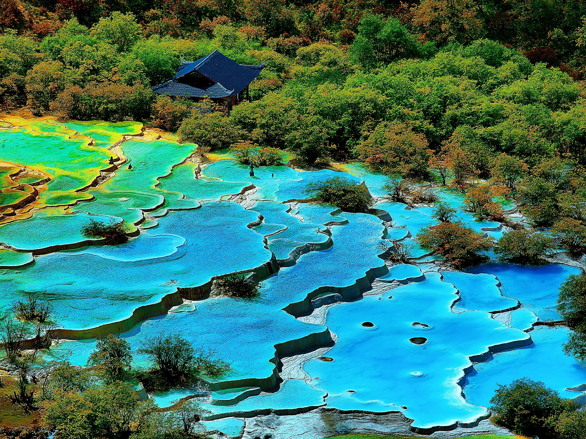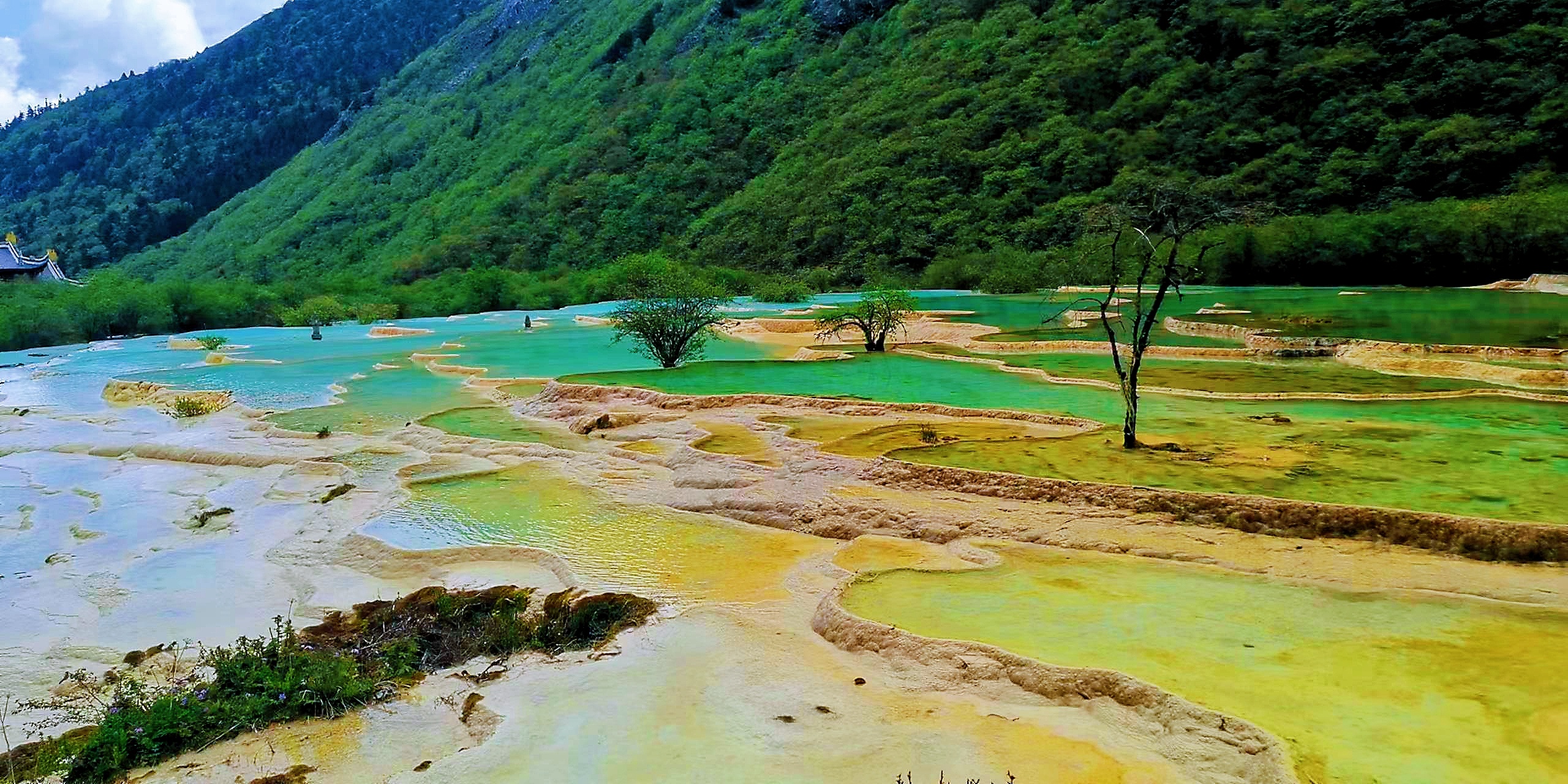 图1–图3.黄龙五彩池 图4.争艳池 图5–图6.明镜倒影池
