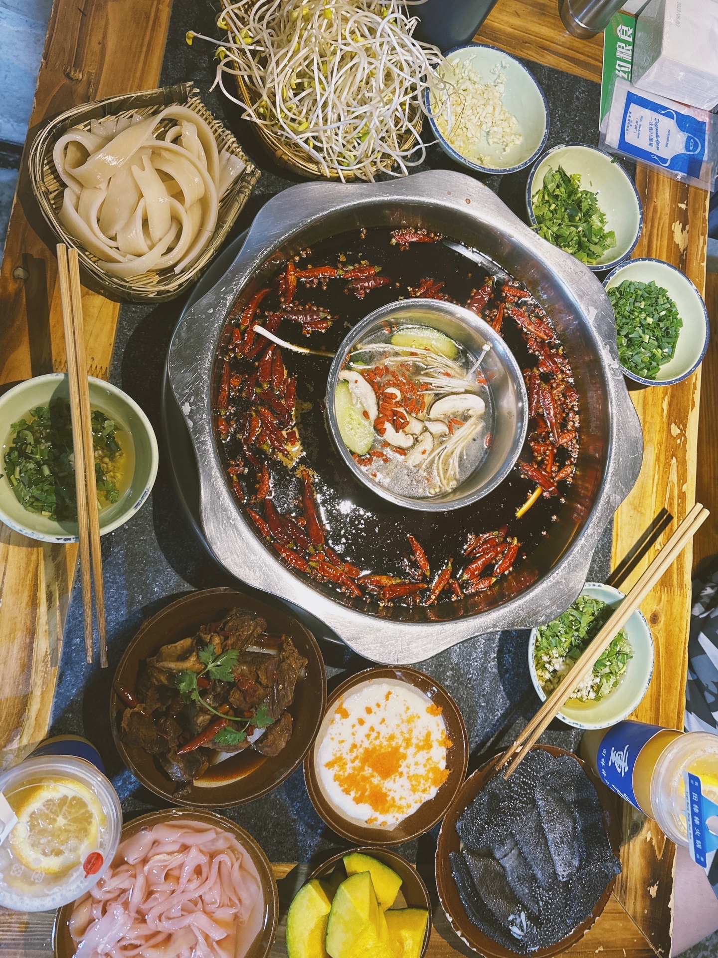 📌环境服务:是沿街小店在地下室,氛围很赞,人基本都坐满了。我们提前在网上在线预定座位,到了那儿应该是下午2点多所以没排队直接进去啦~服务非常热情主动,上菜也很快,买了一个双人餐再加点了甜点、小酥肉、卤鸡爪和牛肉,超好吃的。小tips是要看好火锅的风口,尽量坐反方向就不会吹到烟和热气。