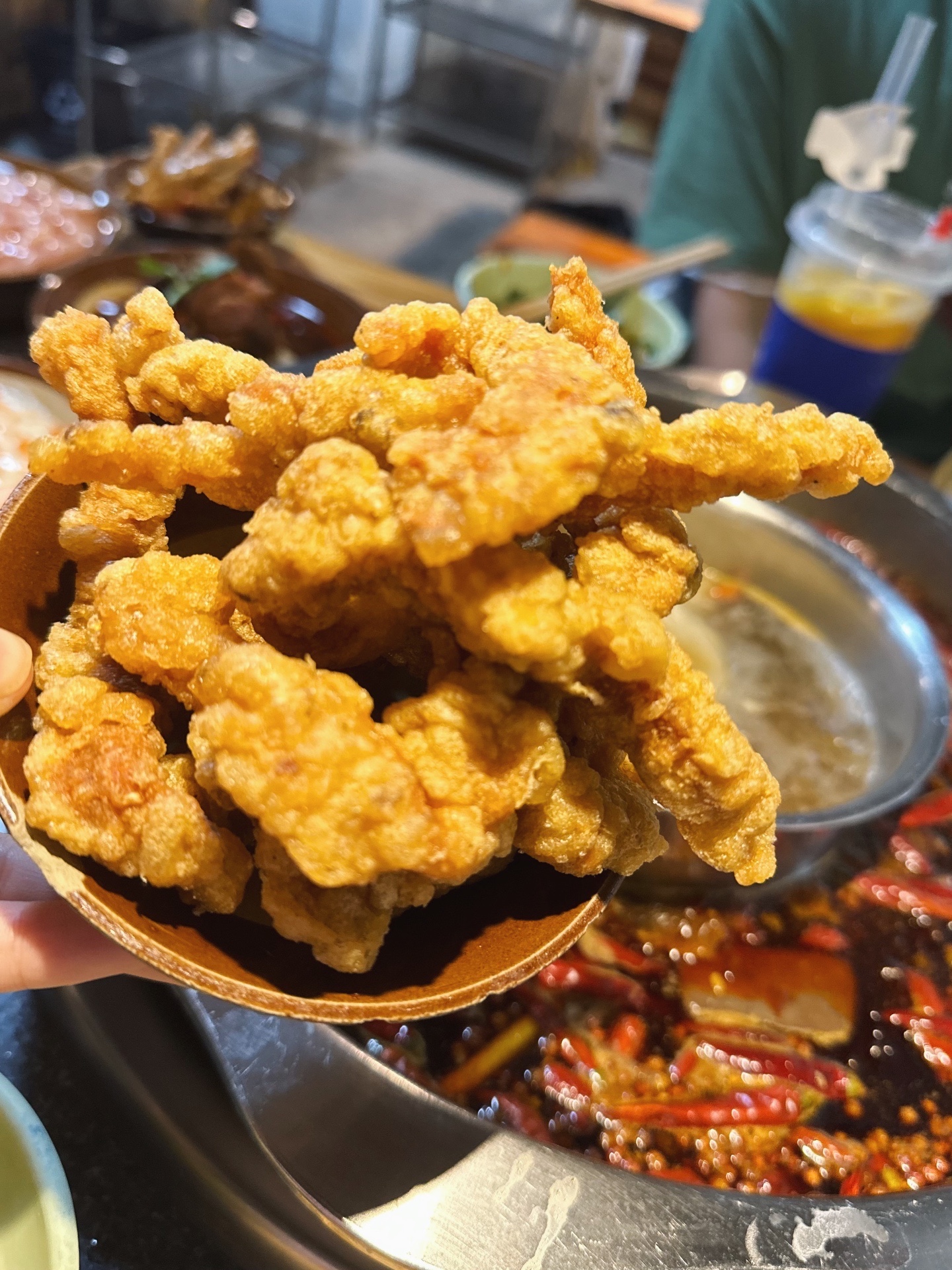 这个鸡爪绝了,特别入味,阿姨上的时候还会和我们说最好在火锅里再涮一下会更入味,更酥。因为同行小伙伴不爱吃,本人一个人狂炫这碗鸡爪hhh小酥肉必点项目哈,热的时候绝了,酥酥脆脆。红糖糍粑甜甜的,很适合配热火朝天的火锅🍲