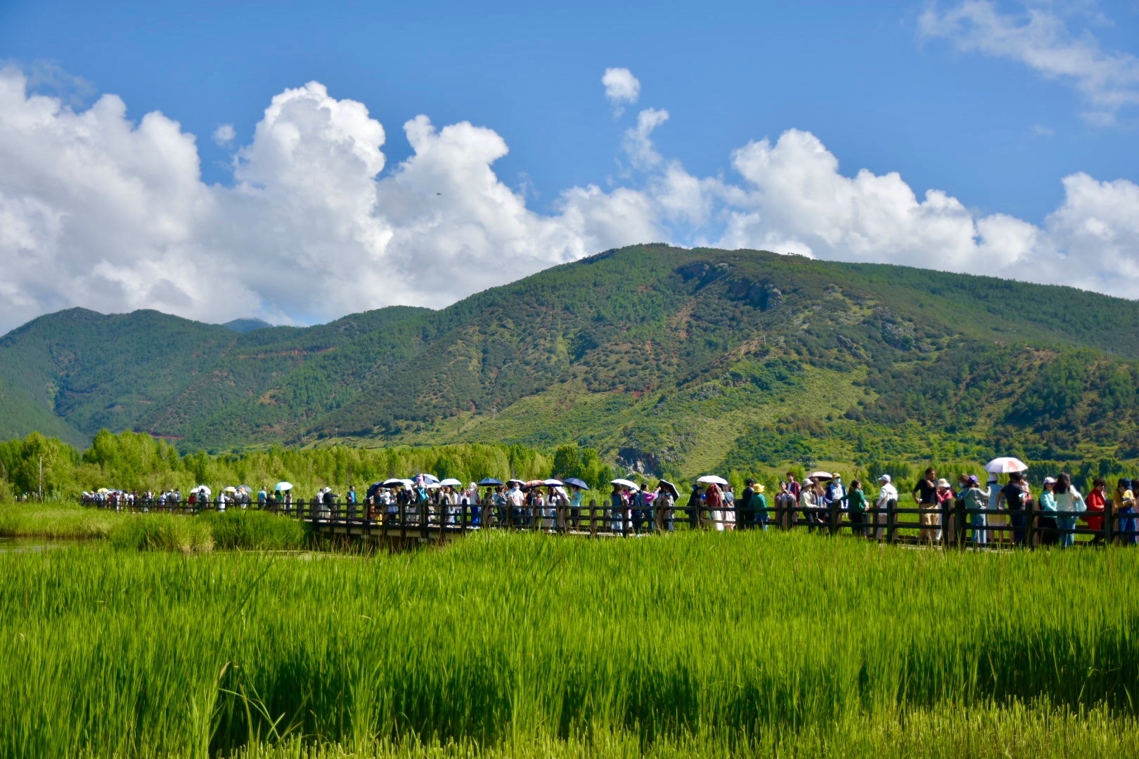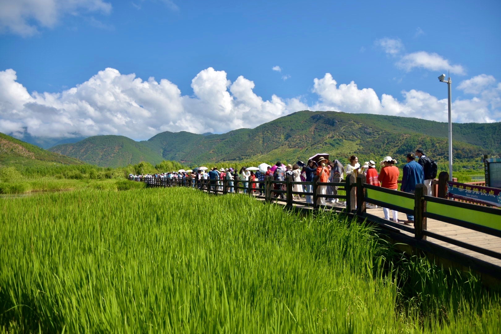 走婚桥位于泸沽湖东南水域的草海区域,是泸沽湖上唯一的一座桥。桥下由于长年泥沙淤积,导致水深变浅,长有茂密的芦苇,远远望去,像一片草的海洋,故当地人称其为“草海”。走婚桥是摩梭男女约会的地方,泸沽湖畔的摩梭人奉行“男不娶,女不嫁”的“走婚”习俗。