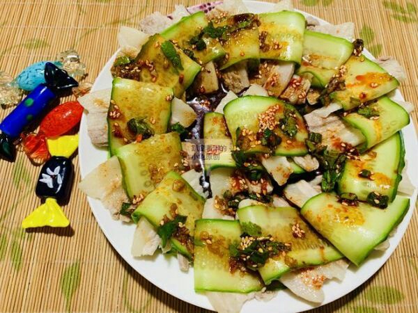 夏天,黄瓜凉菜必不可少,除了一般的“拍黄瓜”、“黄瓜拌木耳、腐竹”、“黄瓜拌拉皮”等凉菜,黄瓜与五花肉也是一款很搭的组合,吃一口既有黄瓜的清香、又有五花肉的肉香,再带着蒜汁及各种调料的丰富味道,吃起来满口喷香,特别下酒。