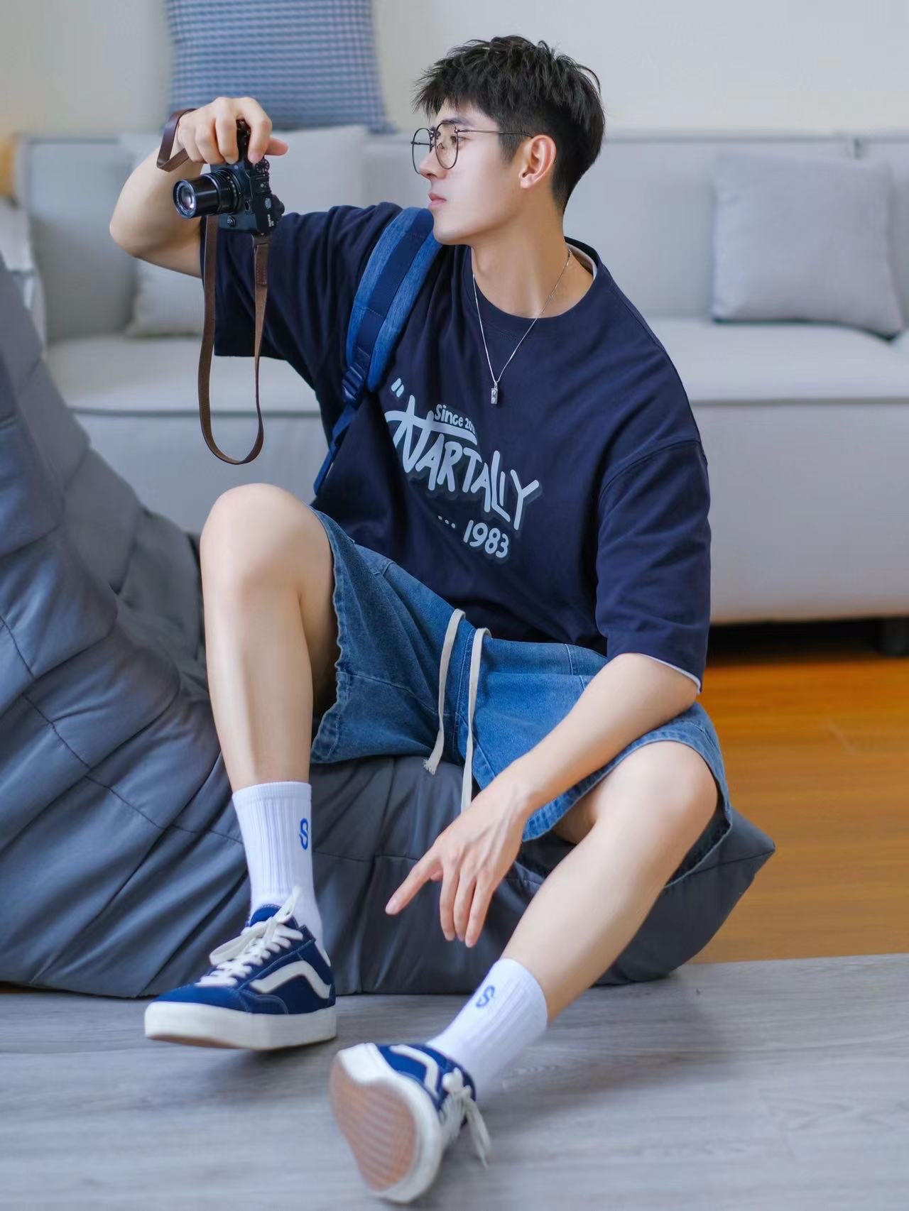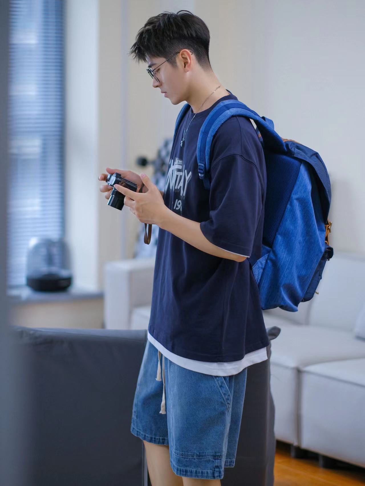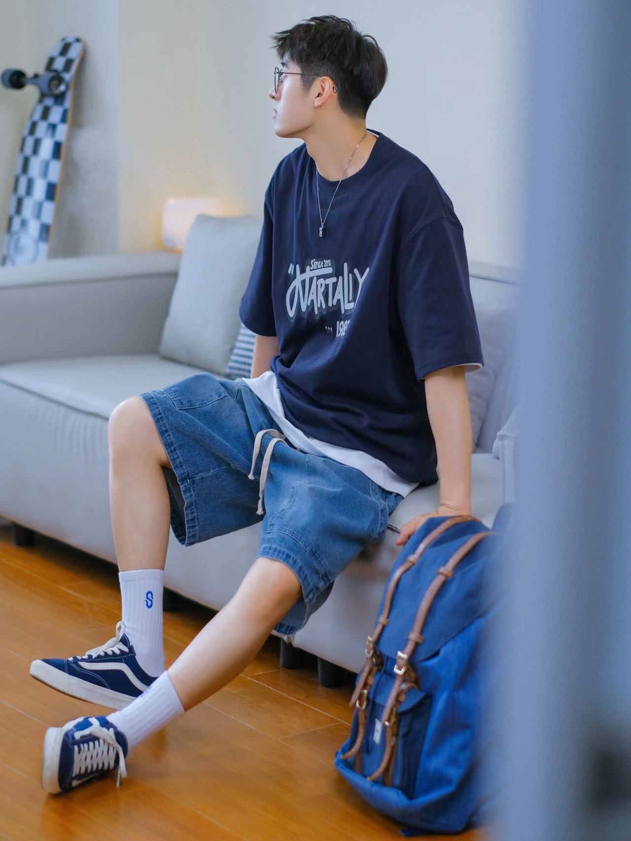 🔹今天居家分享一套“大学生OOTD”—适合普通男孩子的日常穿搭!低饱和蓝色系搭配,简约清爽,T恤搭配牛仔短裤,一整个男孩子夏日懒人穿搭公式!真的好适合男生夏季穿搭!🉑️✨……