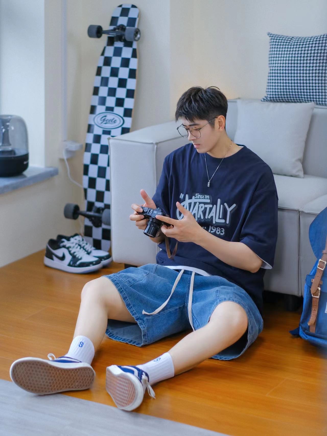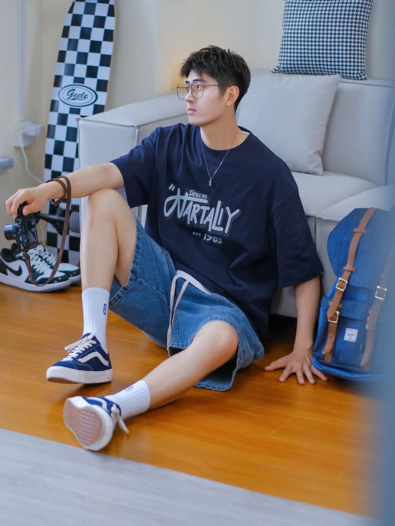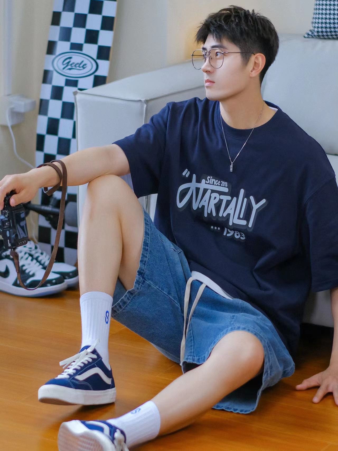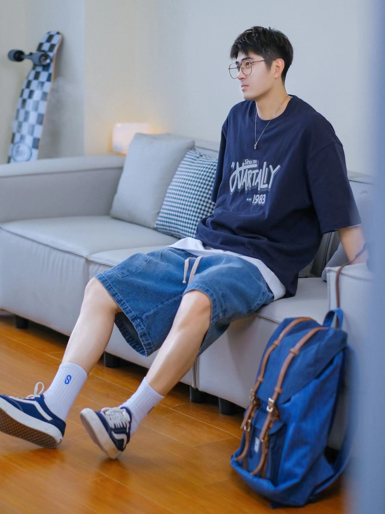 🔹今天居家分享一套“大学生OOTD”—适合普通男孩子的日常穿搭!低饱和蓝色系搭配,简约清爽,T恤搭配牛仔短裤,一整个男孩子夏日懒人穿搭公式!真的好适合男生夏季穿搭!🉑️✨……