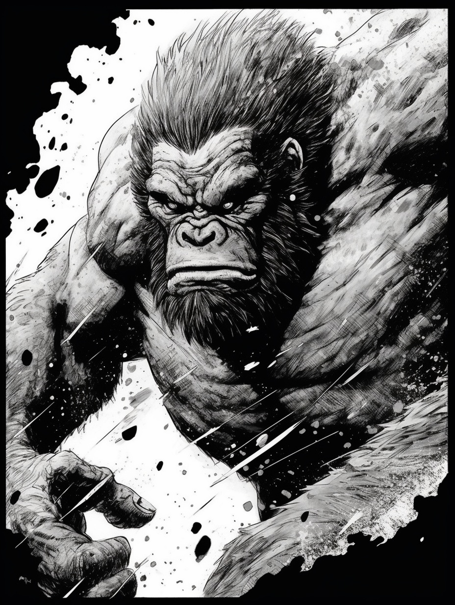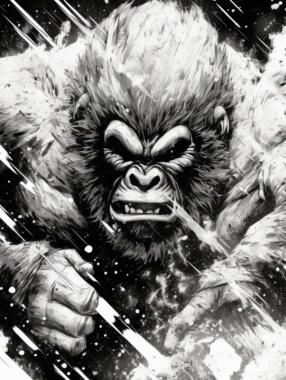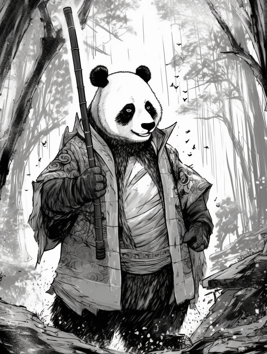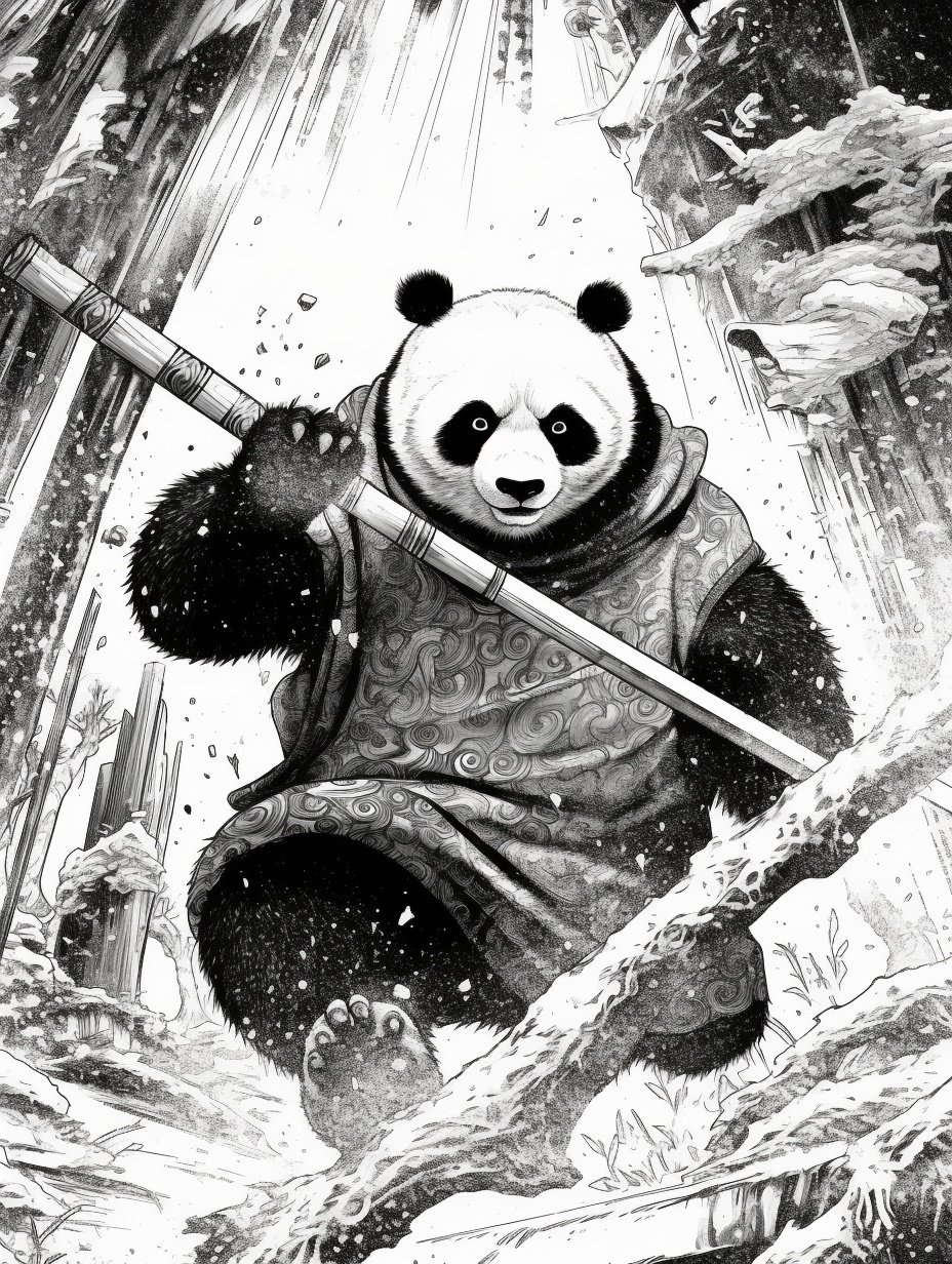 漫画制作,熊猫家族与猩猩家族的战斗,AI绘图。
