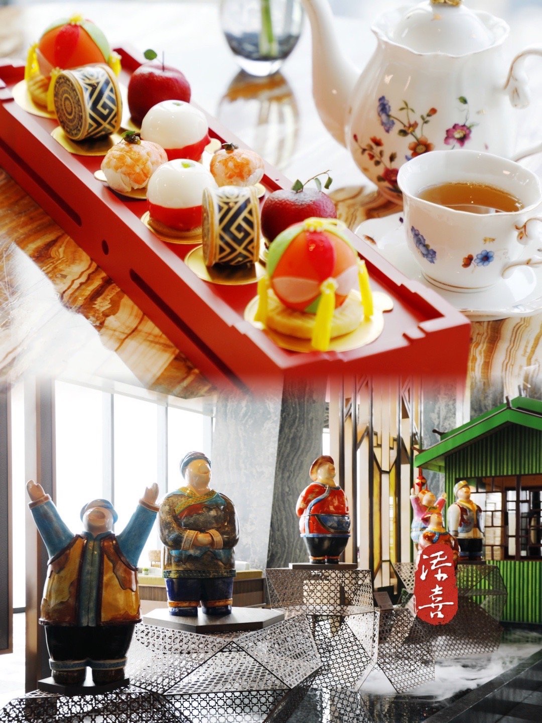 🍵68楼酒店的大堂吧的壮乡特色下午茶,中西合璧,用精致的西点食材,打造出满满装族风情的可爱点心,包括: