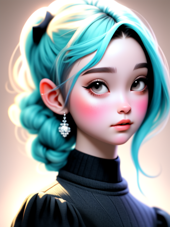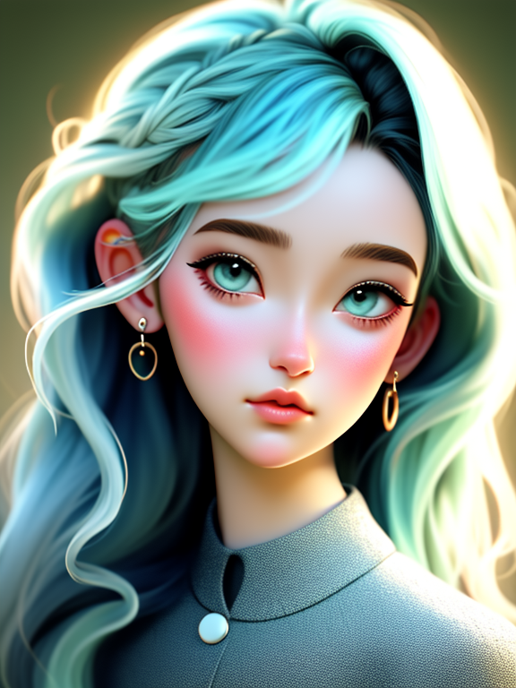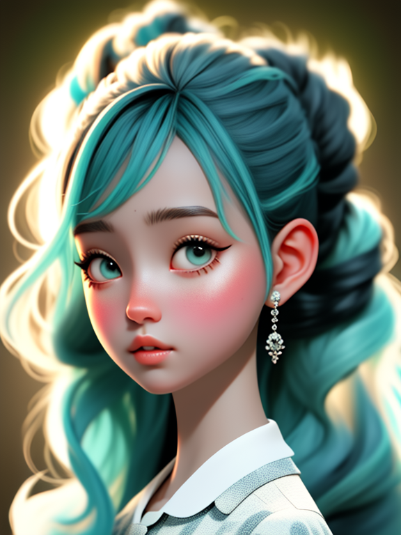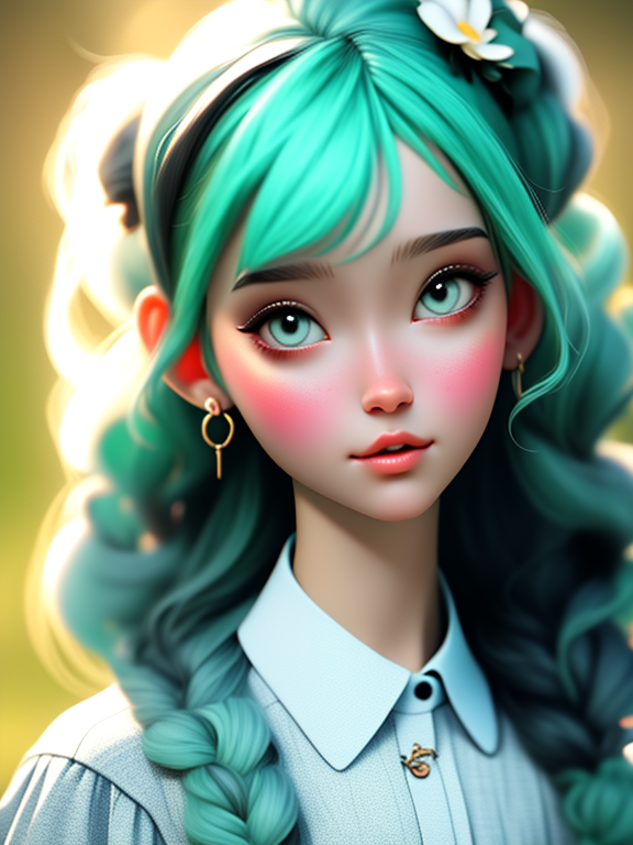 欧洲女孩,青色头发,大眼睛,圆脸,爱笑,特写,丰富多彩,写实,洛可可,高质量,3D动漫,阴影,光感,渲染