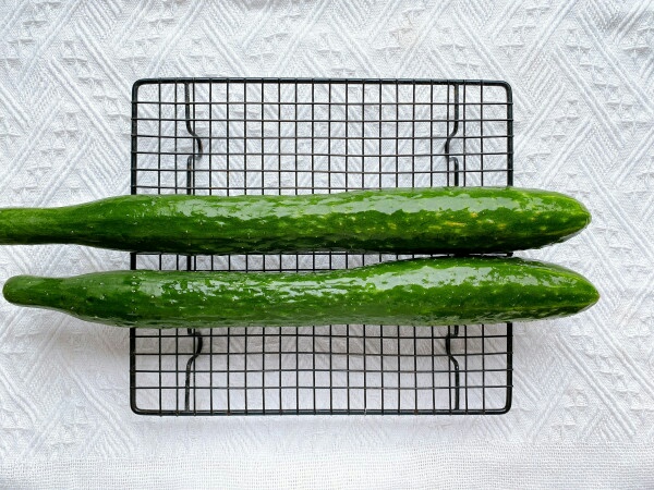 1、准备适量的黄瓜,清洗干净,清洗干净之后削去一部分外皮,不要将皮完全去除,保留一部分黄瓜皮能让黄瓜吃起来更脆爽。