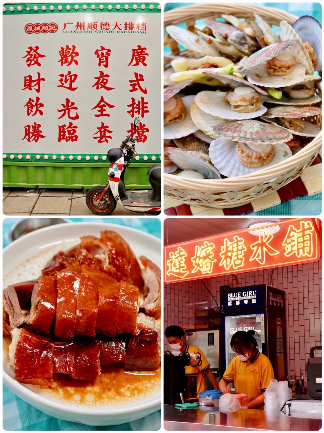 这里可以吃到心心念念、正宗新鲜的烤乳猪、烧鹅、叉烧、猪杂粥、钢管跳舞鸡、皮皮虾、避风塘炒蟹、麻辣小龙虾、蒜蓉小龙虾、爆炒螺丝、辣炒花甲,高压锅蒸生蚝、扇贝,还有地道正宗的广州顺德小炒、啫啫海鲜、粤式点心、广州糖水。