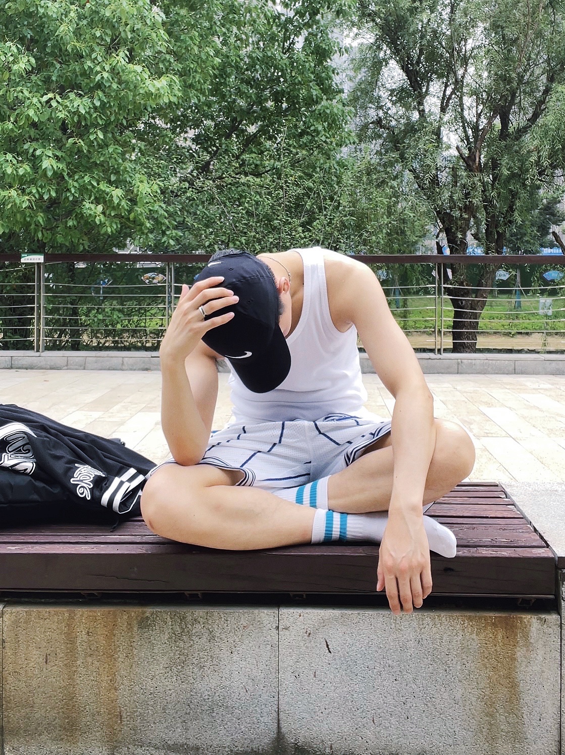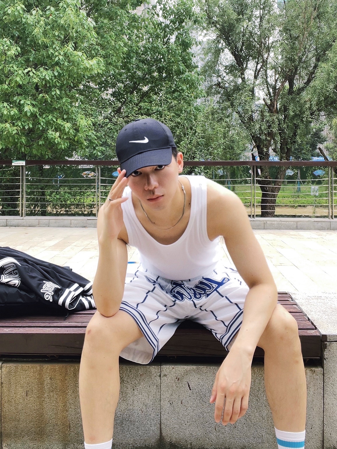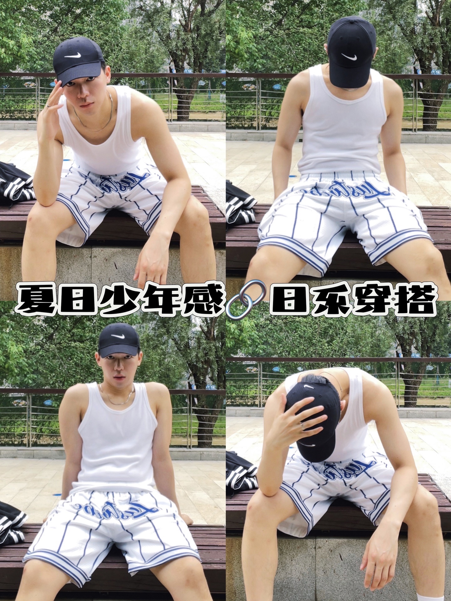 ➕白蓝条纹篮球短裤,日系配色,带大字母,会有一种日系运动的感觉,让我想到木村拓哉的《冰上恋人》🤩🤩🤩