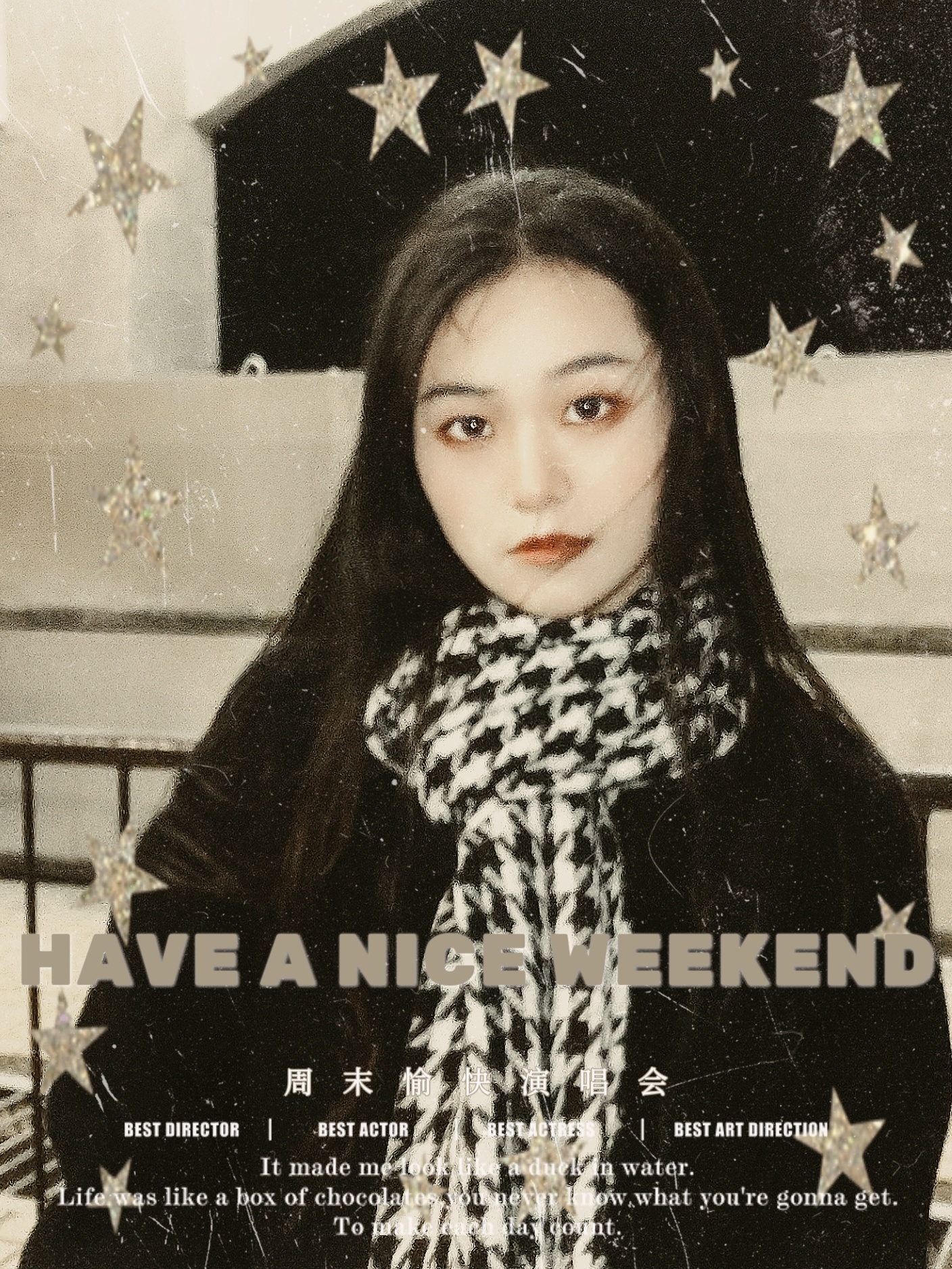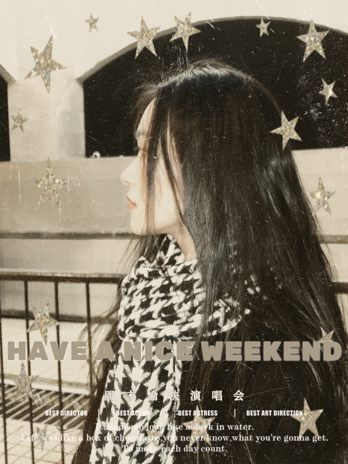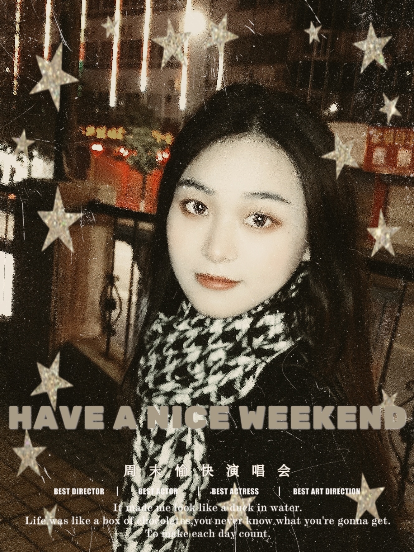周末愉快复古风海报